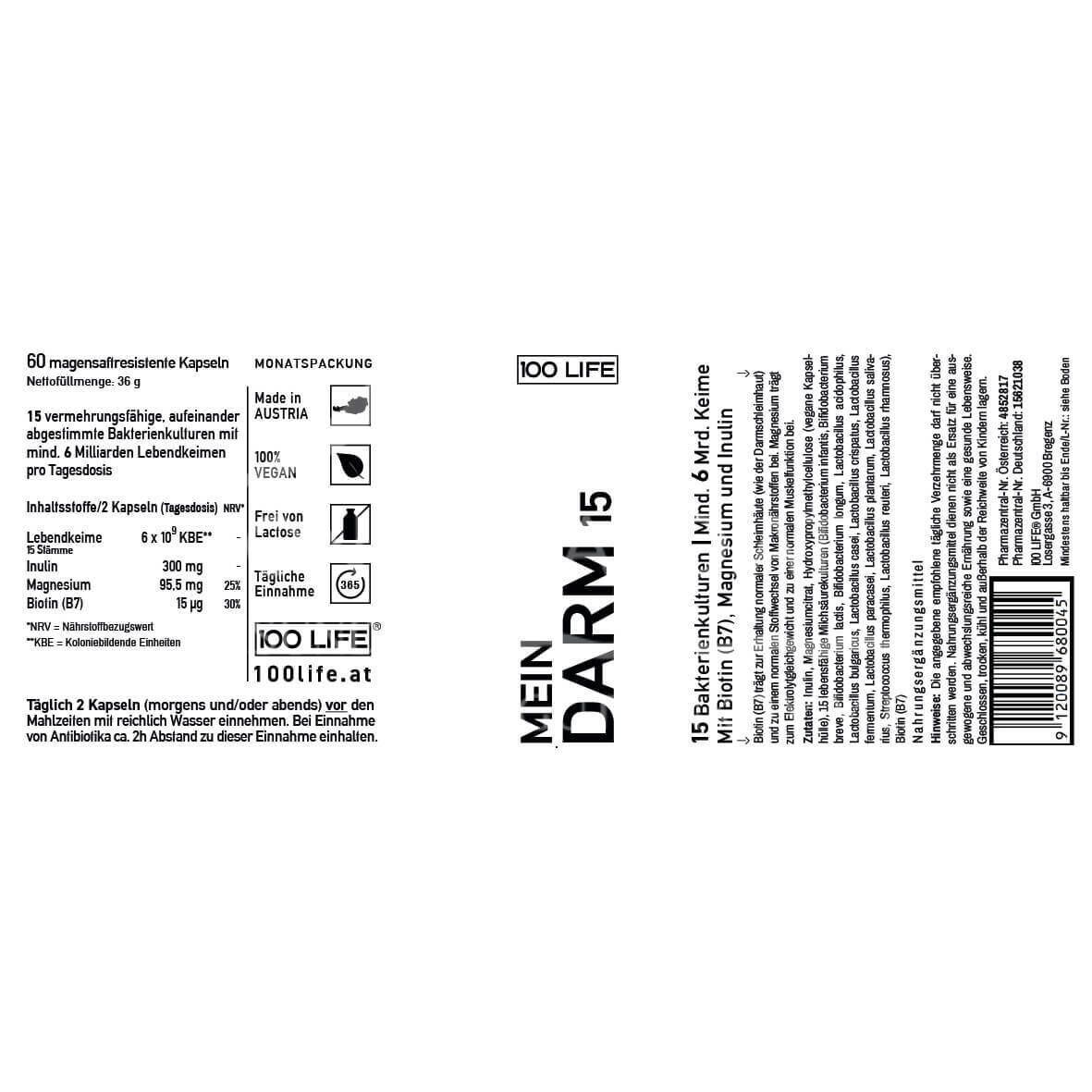 - Enthält Biotin (B7), Magnesium, Inulin und 15 vermehrungsfähige, aufeinander abgestimmte Bakterienkulturen