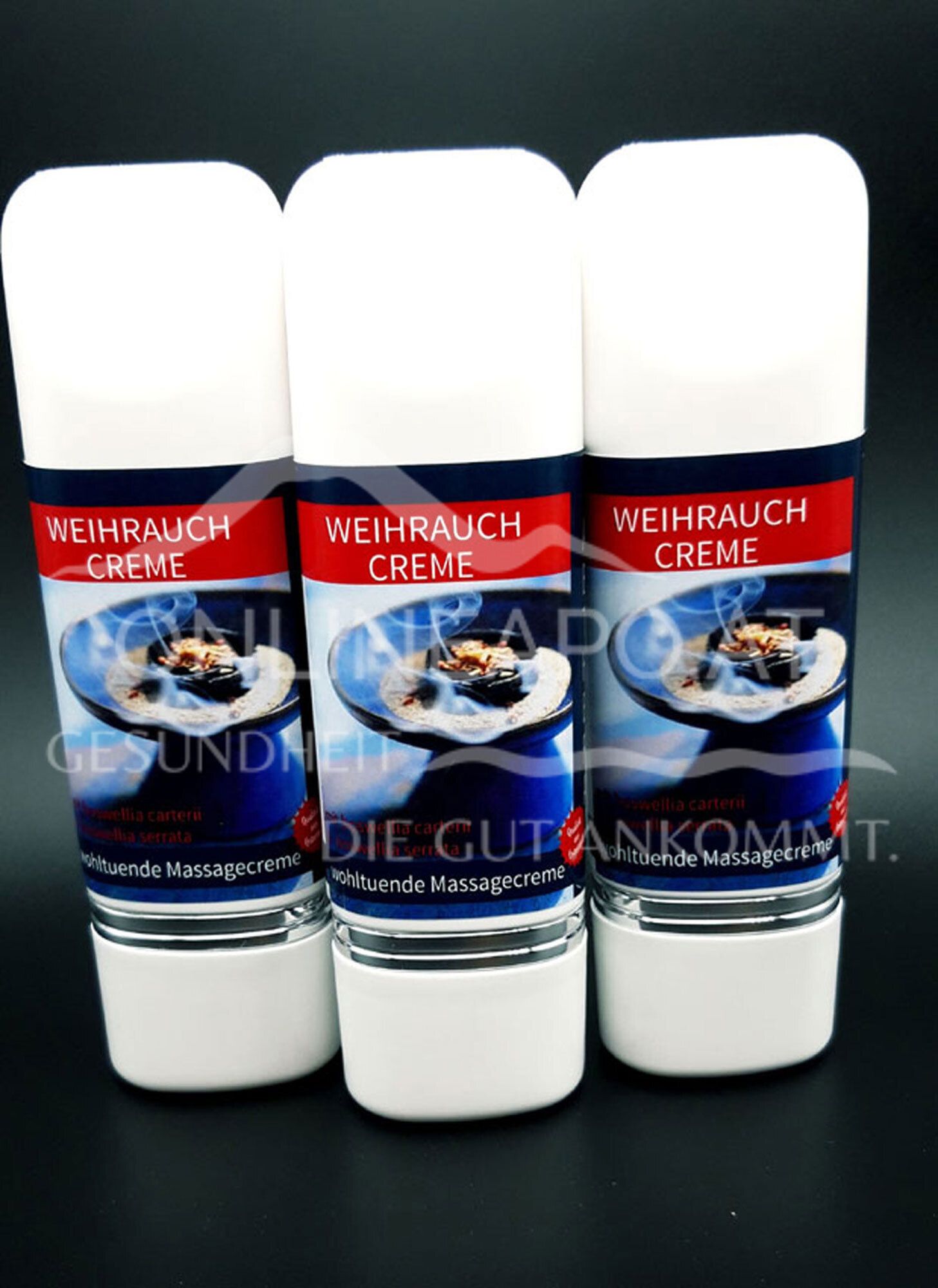 Mit Weihrauchöl (boswellia serrata u. boswellia carterii), Mandelöl, Vitamine A-E-F, Meeresalgen, Arnika, Rosmarin.
