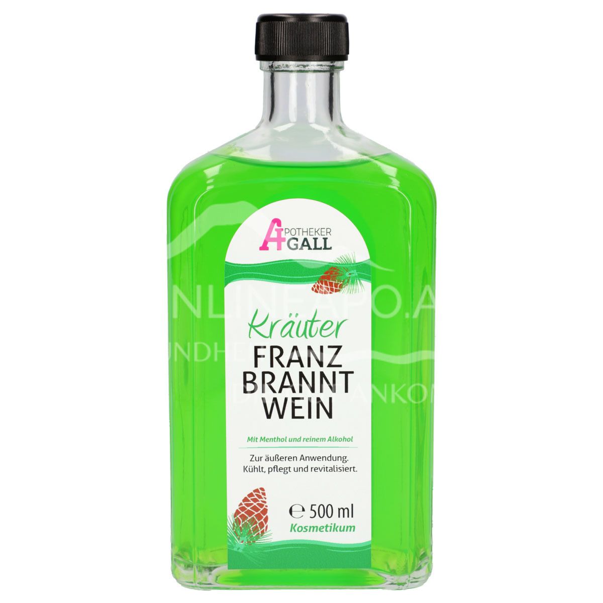 Apotheker Gall`s Kräuter-Franzbranntwein ist ein nach uralter Rezeptur hergestelltes Hausmittel aus vergälltem Alkohol und hochwertigen ätherischen Ölen, sowie Kampfer und Menthol. Auf der Haut eingerieben oder einmassiert entfaltet er kühlende, erfrischende und revitalisierende Eigenschaften. Franzbranntwein eignet sich daher besonders zur äußerlichen Einreibung an heißen Tagen, nach körperlichen Belastungen, Sport oder auf Reisen. Der Kräuter-Franzbranntwein ist für die tägliche Anwendung geeignet.