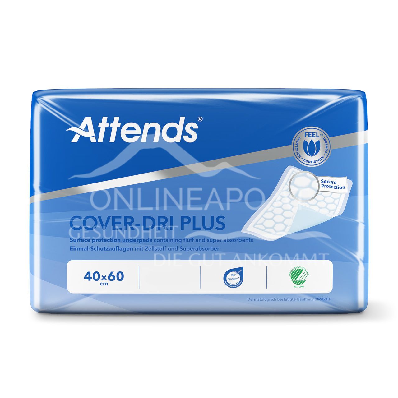 Attends Cover-Dri Plus Einmal-Schutzauflagen bieten zuverlässigen Schutz vor Feuchtigkeit und Flecken. Ideal für Betten, Möbel und Rollstühle. Dank der saugstarken Oberfläche bleiben Sie und Ihre Umgebung trocken und hygienisch.
