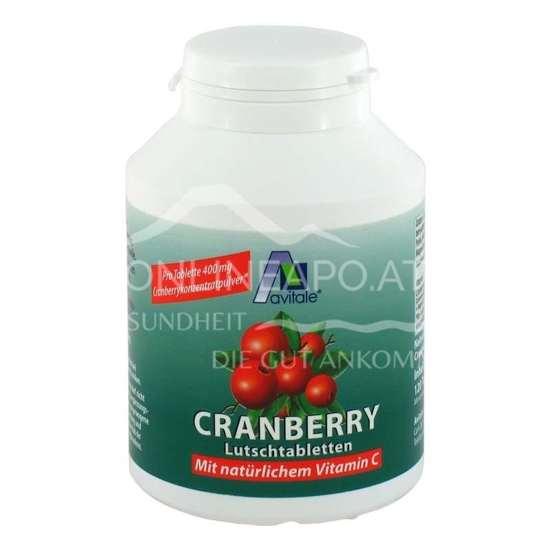 Profitieren Sie von der Kraft der Cranberry! Avitale Lutschtabletten mit 400 mg Cranberry-Konzentrat und natürlichem Vitamin C aus der Acerola-Kirsche. Ideal zur Unterstützung des Immunsystems und für das allgemeine Wohlbefinden. Laktosefrei & lecker.