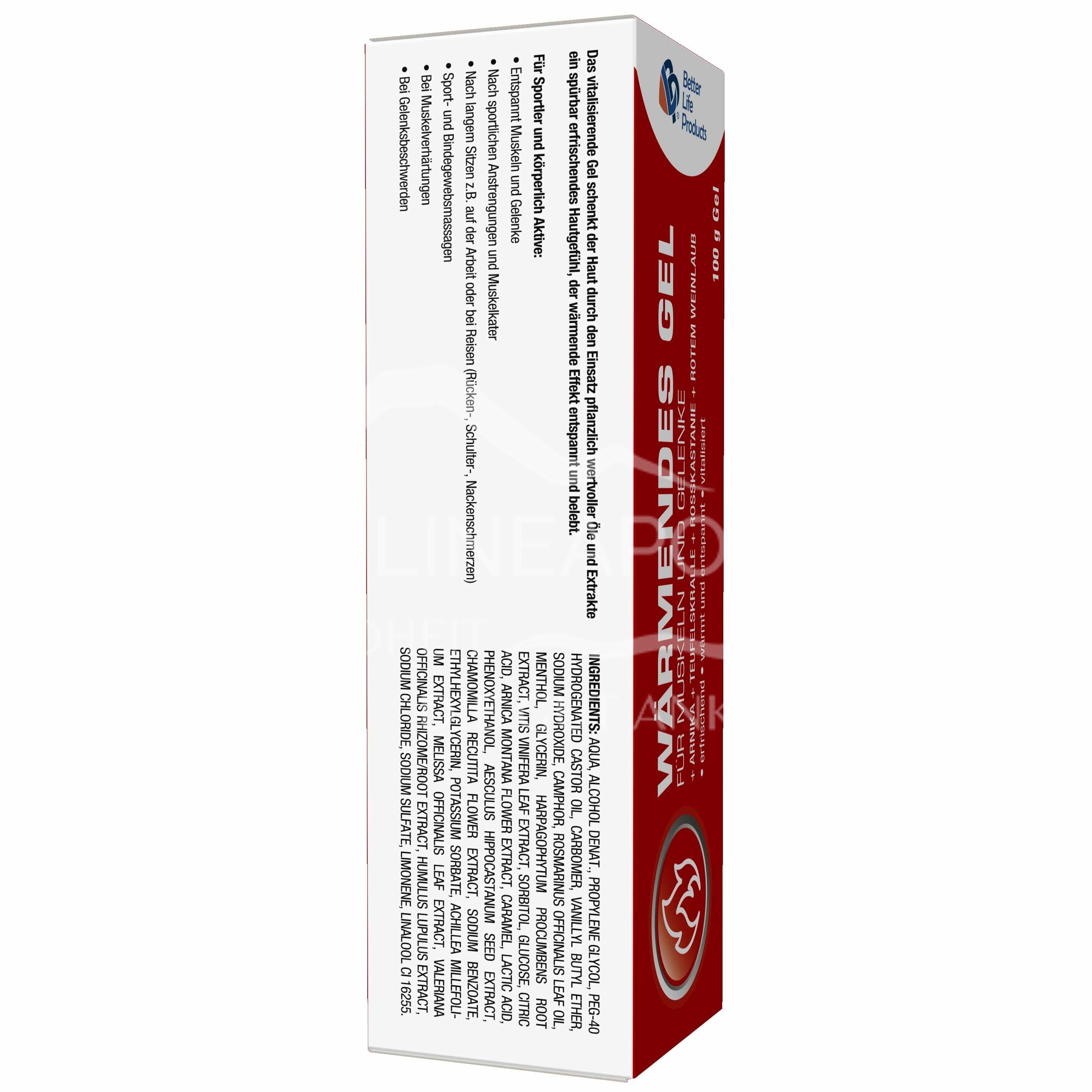 Better Life Products® wärmendes Gel beinhaltet Öle und Extrakte auf pflanzlicher Basis, die rasch von der Haut aufgenommen werden und diese erfrischen und revitalisieren.