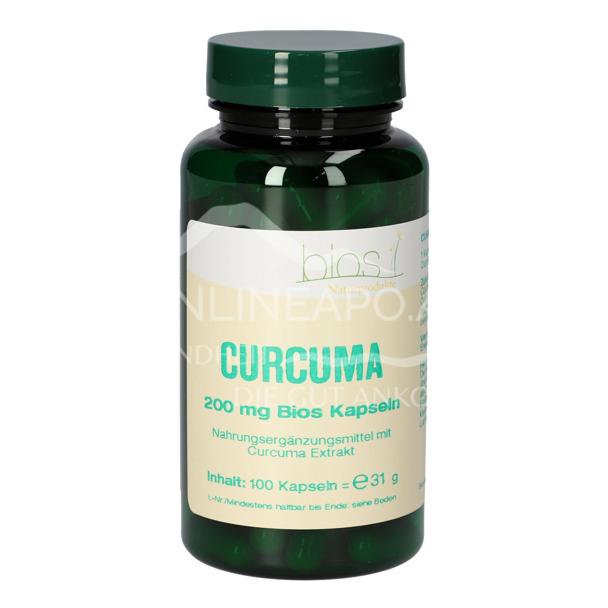 Die Bios Curcuma 200 mg Kapseln sind ein Nahrungsergänzungsmittel mit Curcuma Extrakt. Curcuma gehört zur Familie der Ingwergewächse (Zingiberaceae) und wird auf Grund der Färbekraft auch Safran- oder Gelbwurzel genannt.