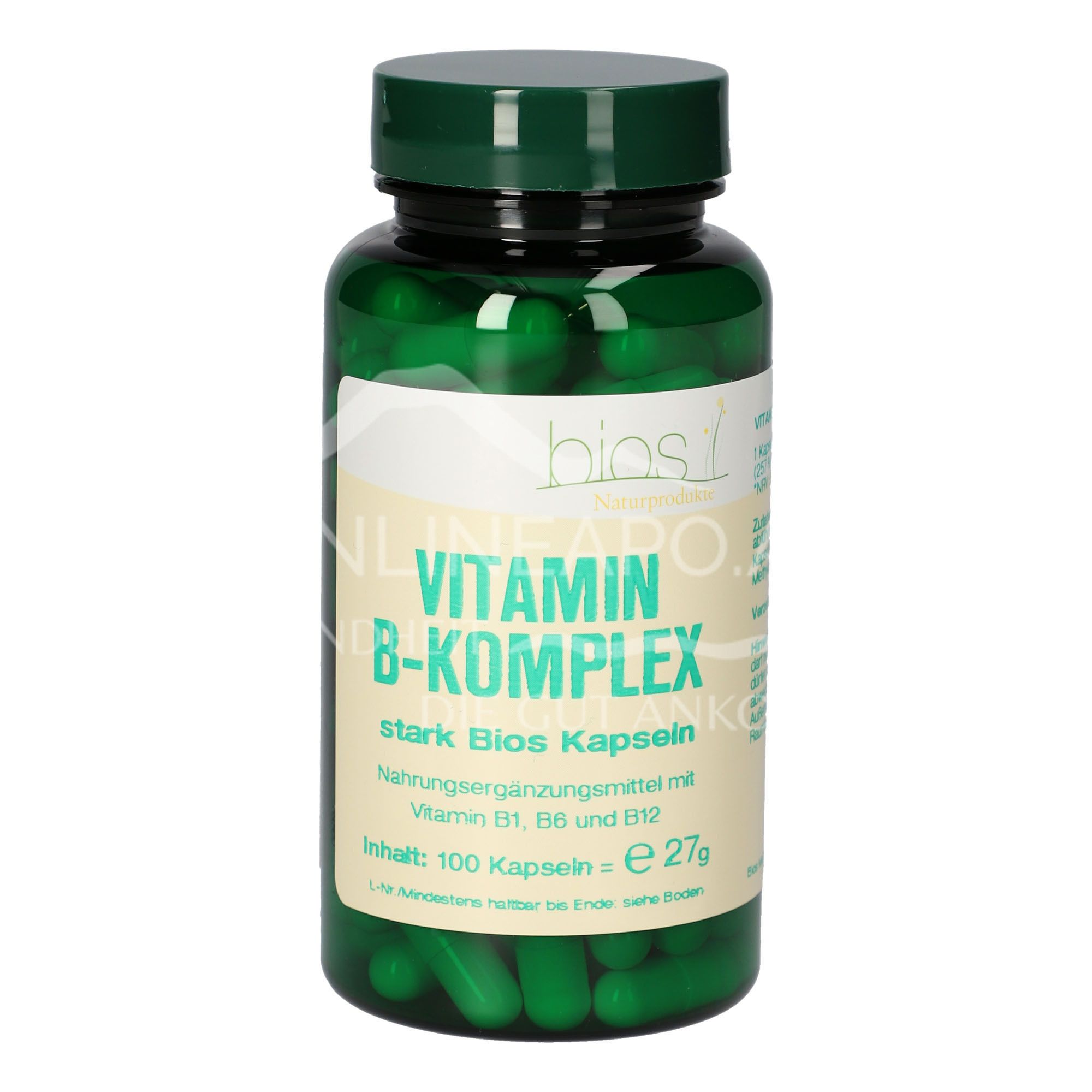 Die Bios Vitamin B-Komplex Stark Kapseln sind ein Nahrungsergänzungsmittel mit den Vitaminen B1, B6 und B12.