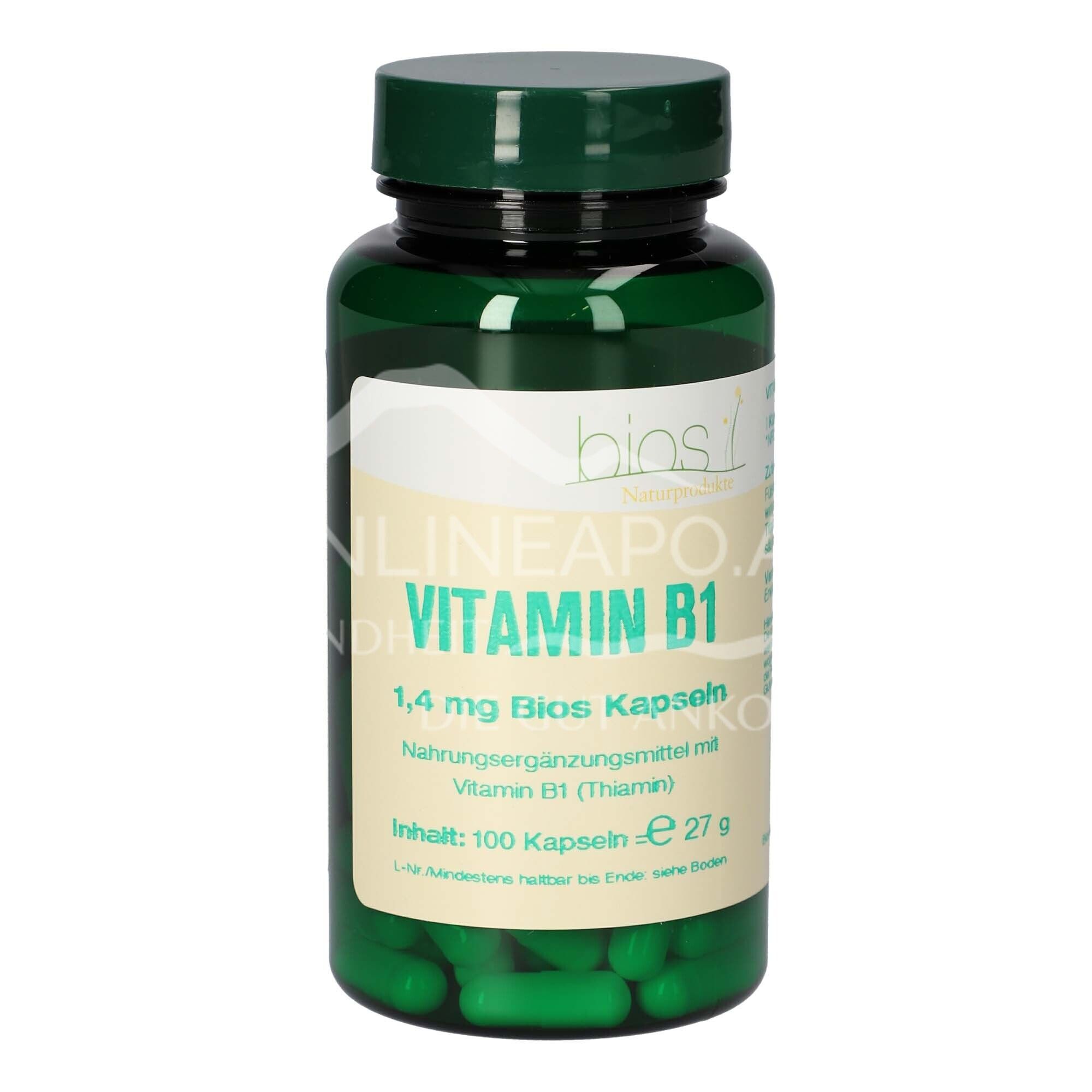 Bios Vitamin B1 Kapseln enthalten 1,4 mg hochwertiges Thiamin pro Kapsel. Vitamin B1 ist essentiell für Energiestoffwechsel und Nervenfunktion.