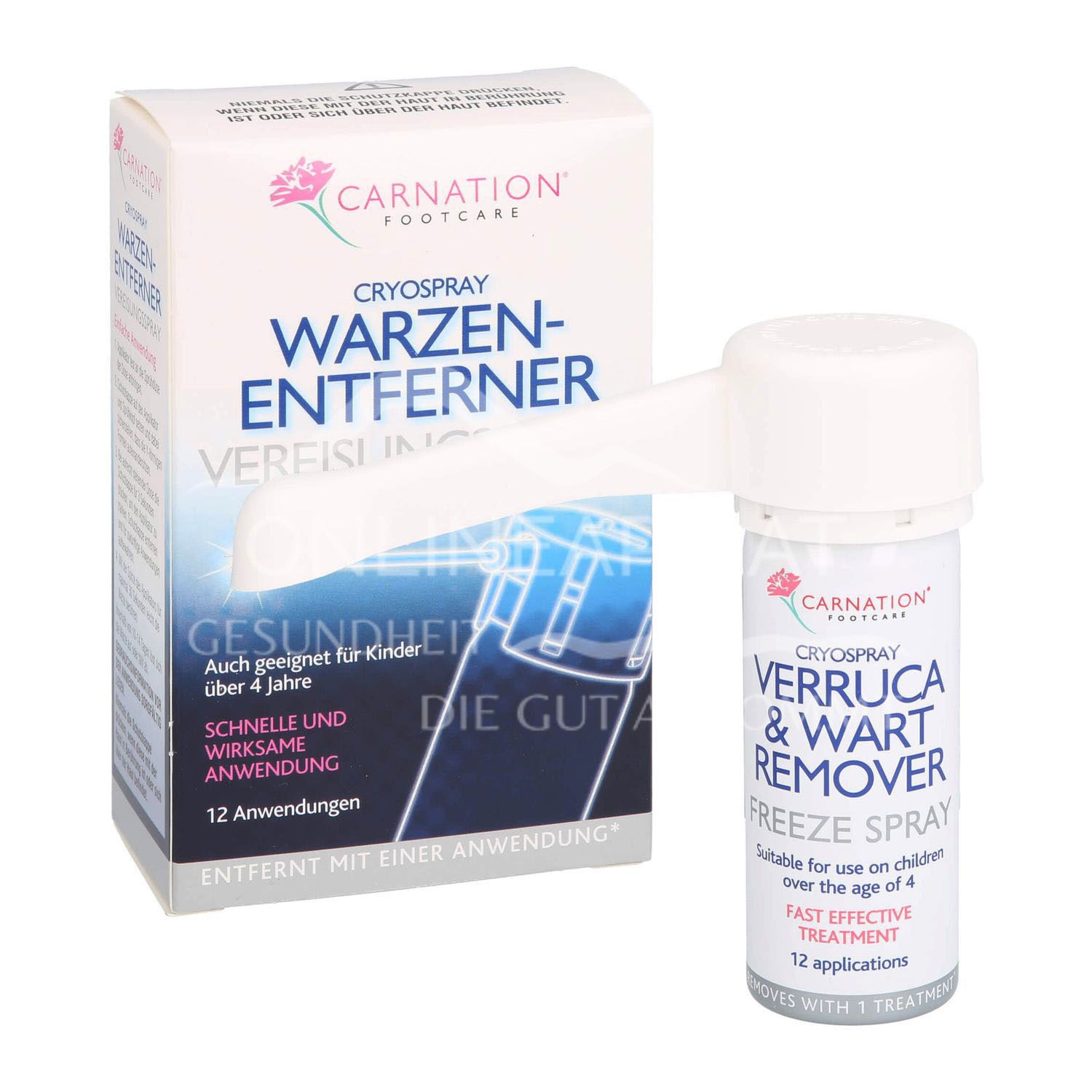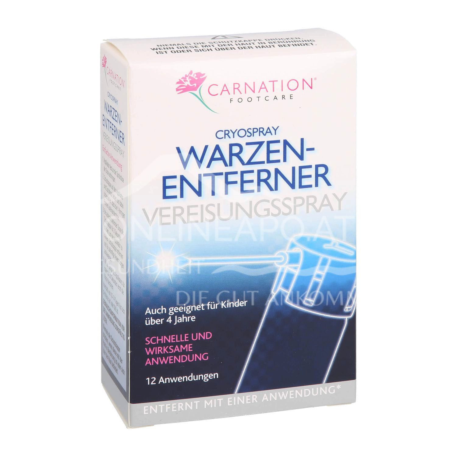 Der Carnation® Warzenentferner Vereisungsspray ist ein Medizinprodukt für eine schnelle, wirksame und einfache Anwendung zur Entfernung von Warzen. Es wirkt durch schnelle Vereisung der Warze ohne Verwendung von Gels, Cremes oder Pflaster.