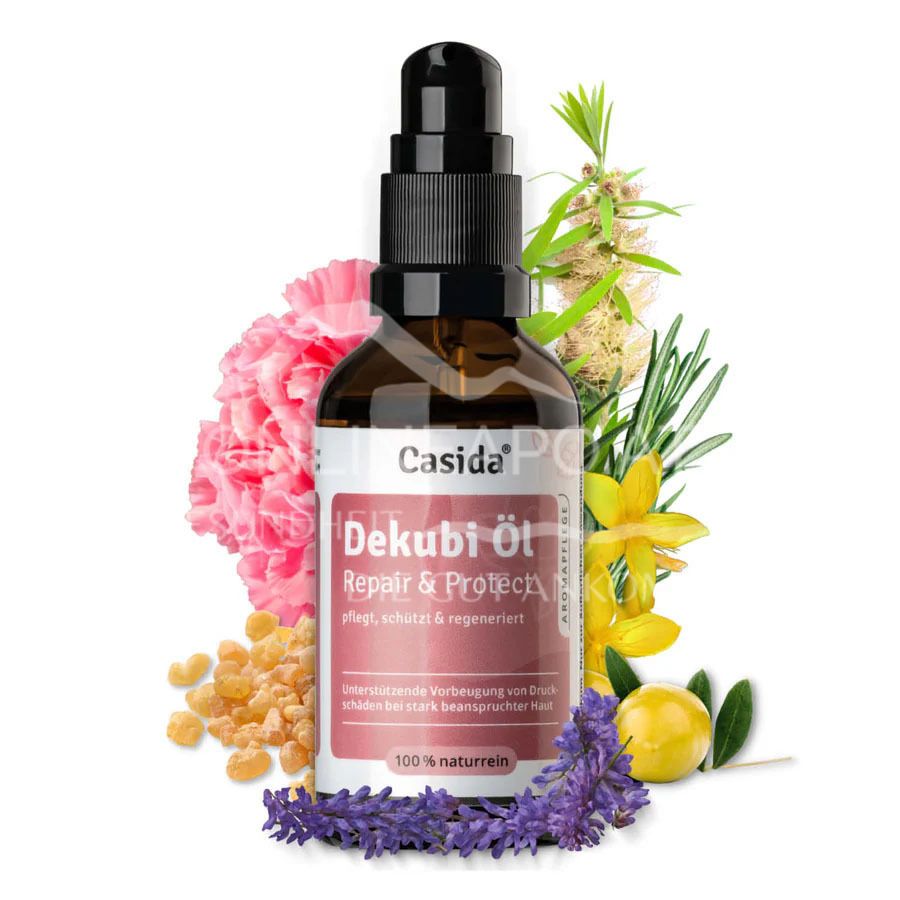 Das Casida® Dekubi Öl Repair & Protect dient zur Einreibung für Pflege, Schutz und Regeneration von druckbelasteter Haut - aus 100 % naturreinen Ölen.