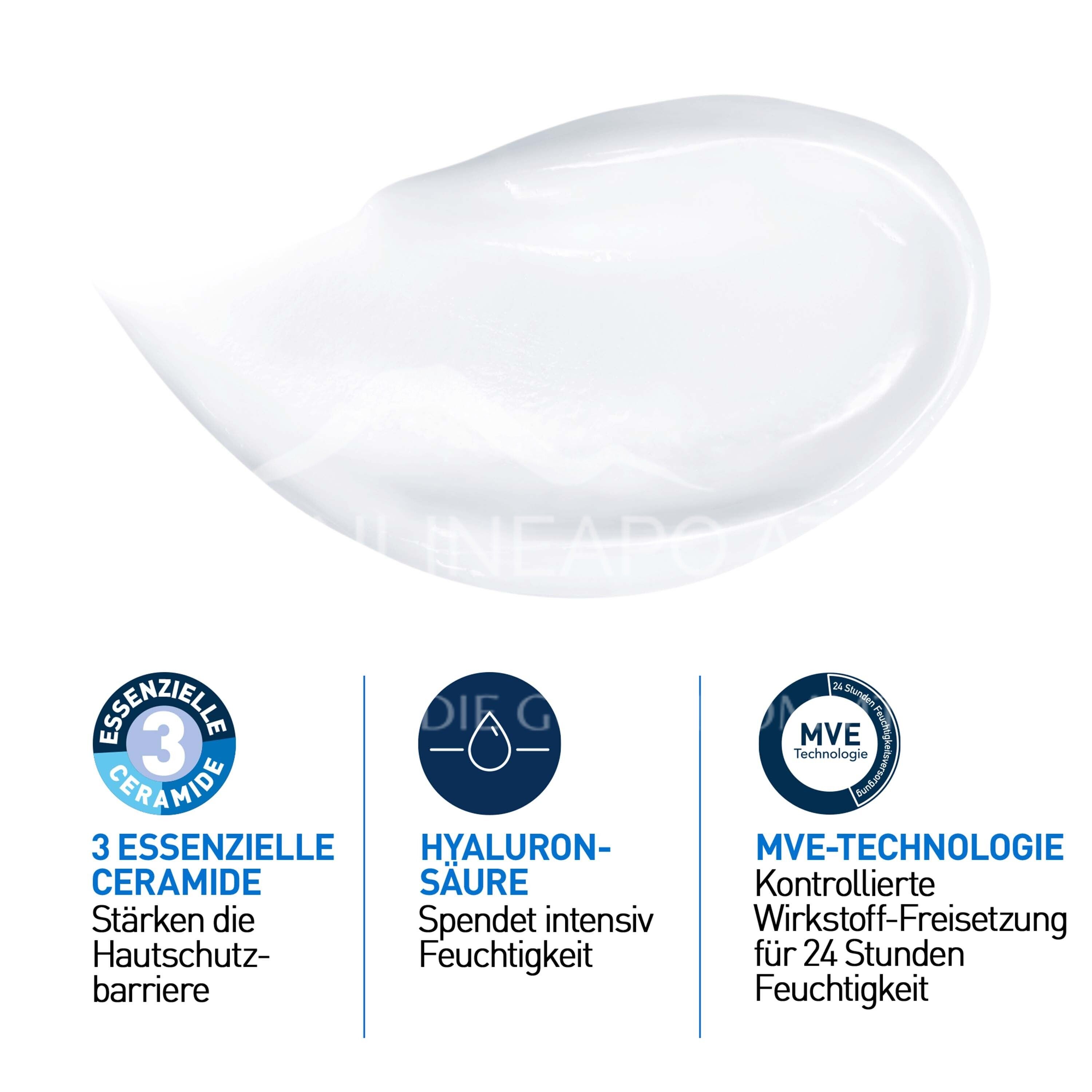 CeraVe Feuchtigkeitscreme - Für empfindliche, trockene bis sehr trockene Haut, mit 3 essenziellen Ceramiden und Hyaluron. Spendet Feuchtigkeit und unterstützt die Erneuerung der Hautschutzbarriere von Gesicht und Körper.