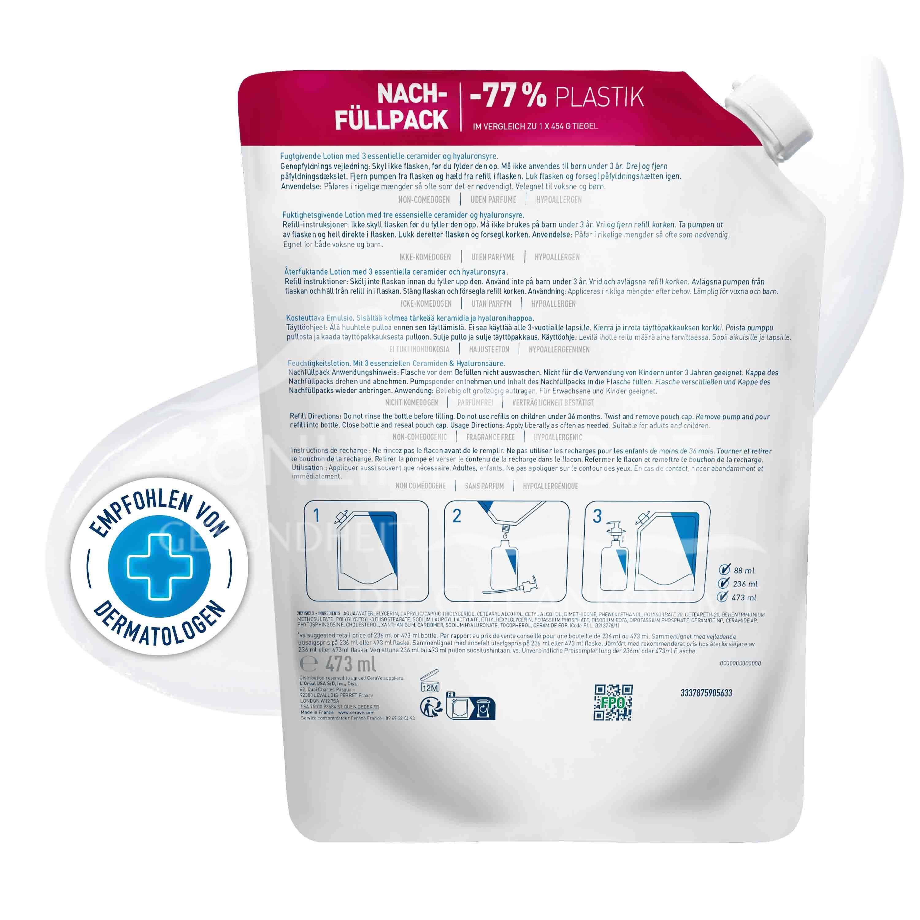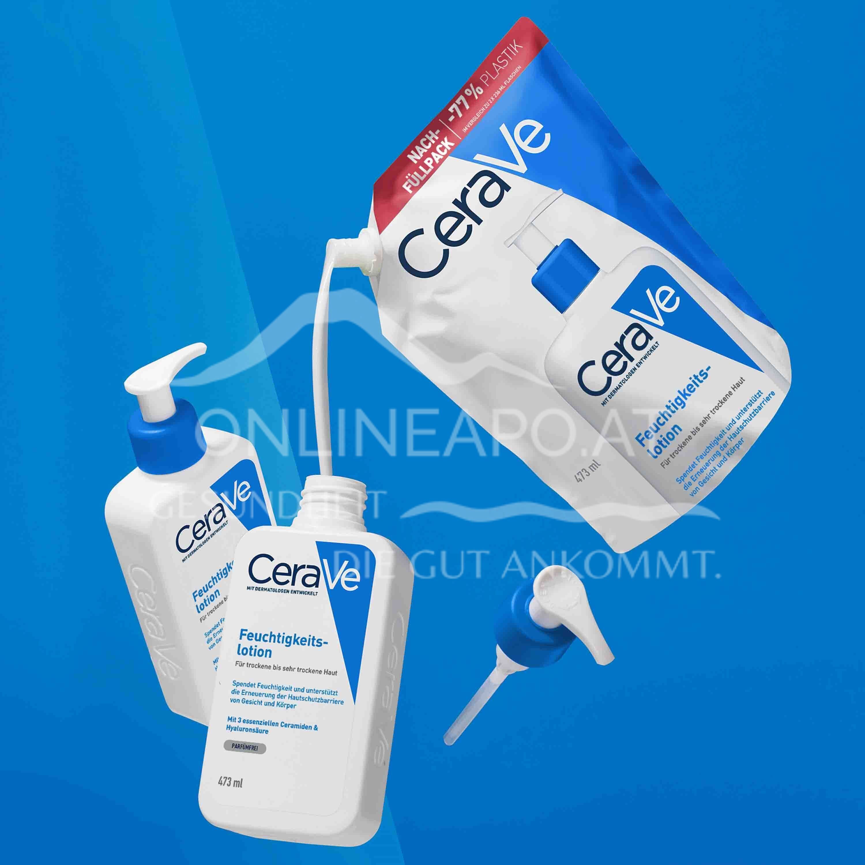 - Die CeraVe Feuchtigkeitslotion kann beliebig häufig aufgetragen werden. Nach dem Duschen oder Baden den ganzen Körper eincremen oder nach Bedarf an trockenen, juckenden Hautstellen auftragen.