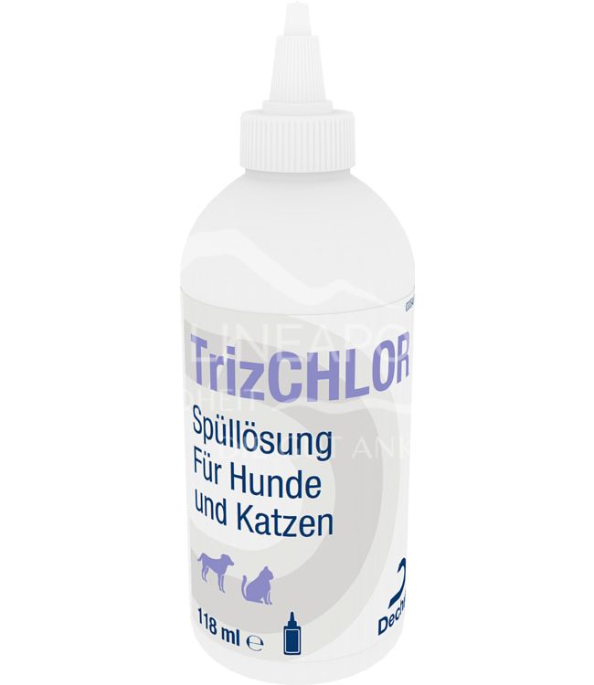 - Vor der ersten Verwendung weiße Verschlusskappe abdrehen und Siegel entfernen. Vor Gebrauch gut schütteln. Bei Verabreichung sollte TrizChlor am besten körperwarm sein. Auf betroffene Hautstellen auftragen. Anschließend überflüssige Flüssigkeit mit einem Tuch aufsaugen. Wiederholung der Anwendung nach Bedarf oder tierärztlicher Anweisung.