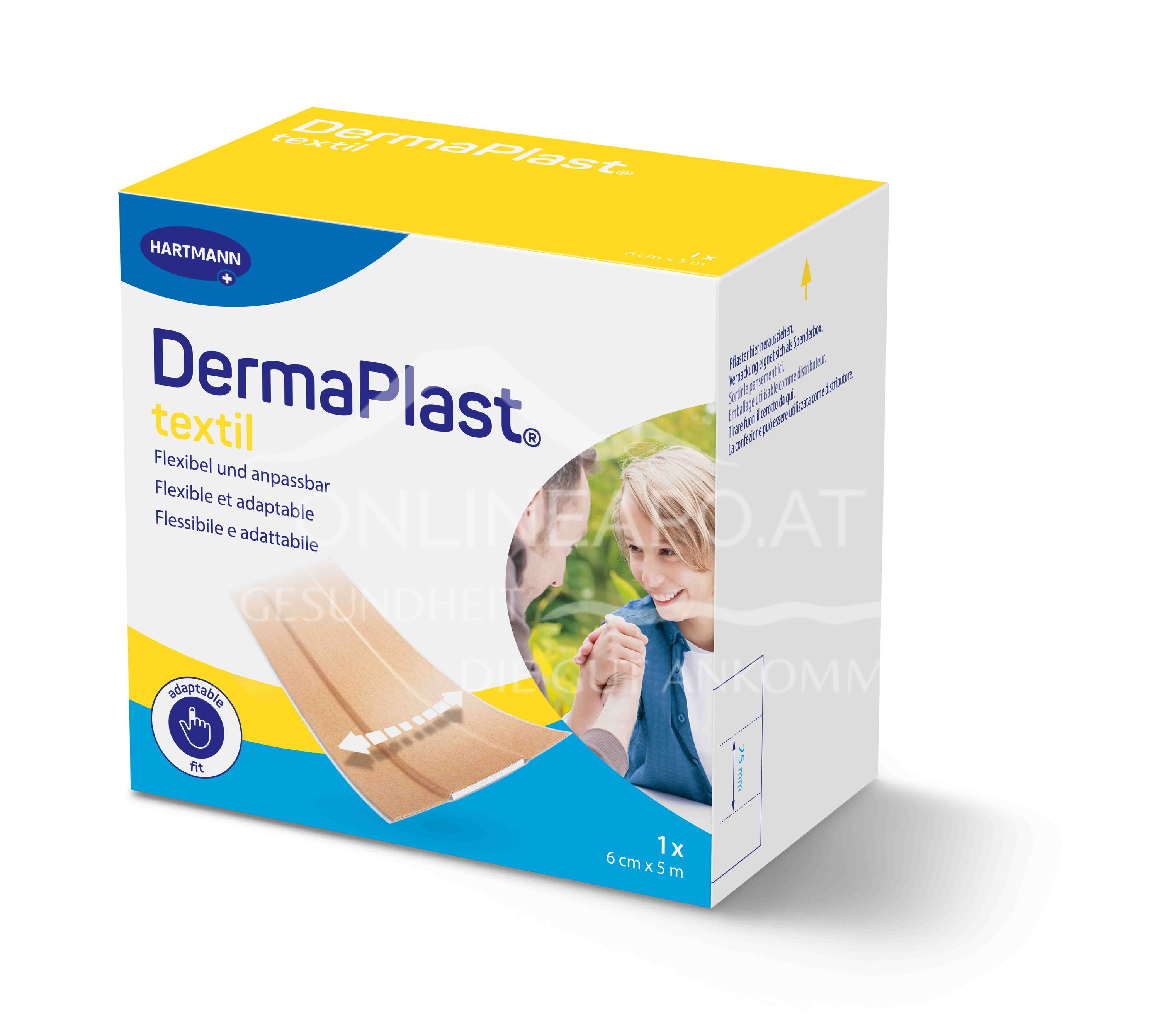 Entdecken Sie das DermaPlast® Textil Pflaster als Wundschnellverband von der Rolle. Hautfreundlich, elastisch und luftdurchlässig. Schneiden Sie einfach die benötigte Größe für jede Wunde zu. Ideal für Gelenke und bewegte Körperstellen. Sicherer Halt!