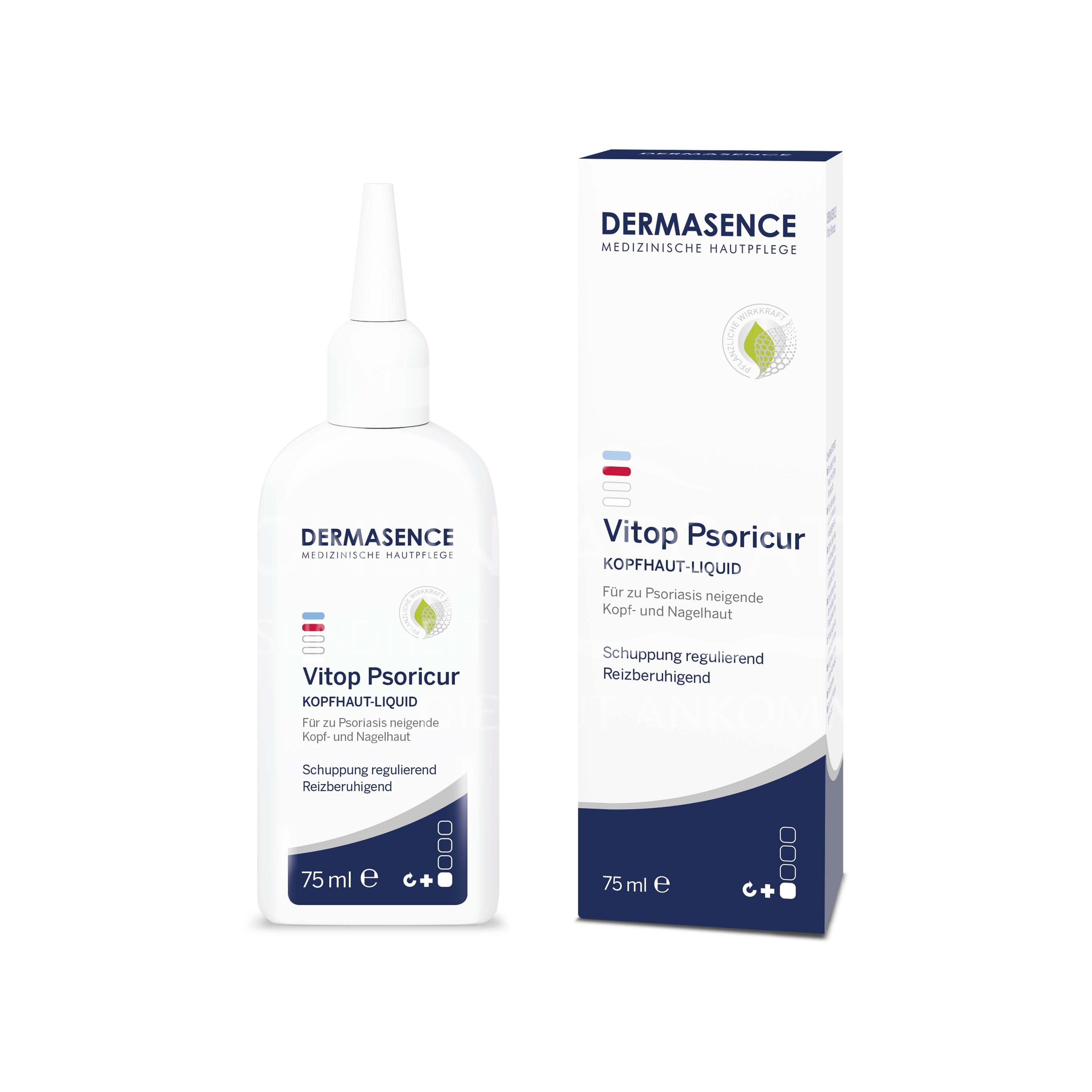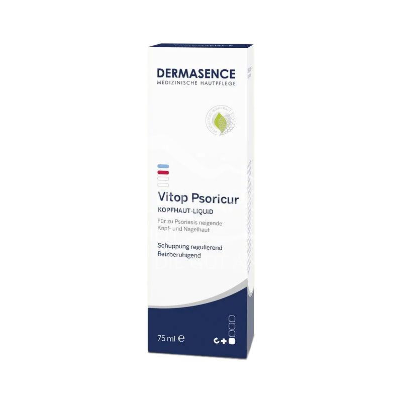 Entdecken Sie das Dermasence Vitop Psoricur Kopfhaut-Liquid, die Intensivpflege bei zu Psoriasis neigender Kopfhaut. Es reguliert effektiv starke Schuppung, beruhigt Juckreiz und beugt Rötungen vor, ohne zu fetten. Für eine entspannte Kopfhaut.