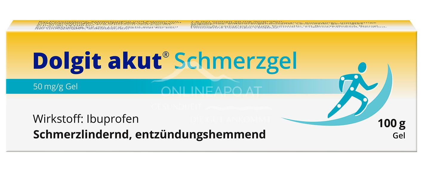 Das Dolgit akut® Schmerzgel, 50 mg/g Gel ist ein schmerzlinderndes und entzündungshemmendes rezeptfreies Arzneimittel zum Einreiben auf die Haut, mit dem Wirkstoff: Ibuprofen.