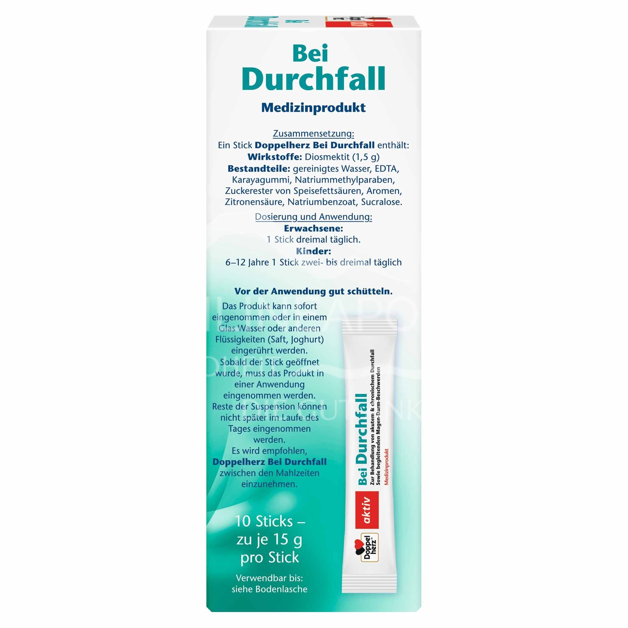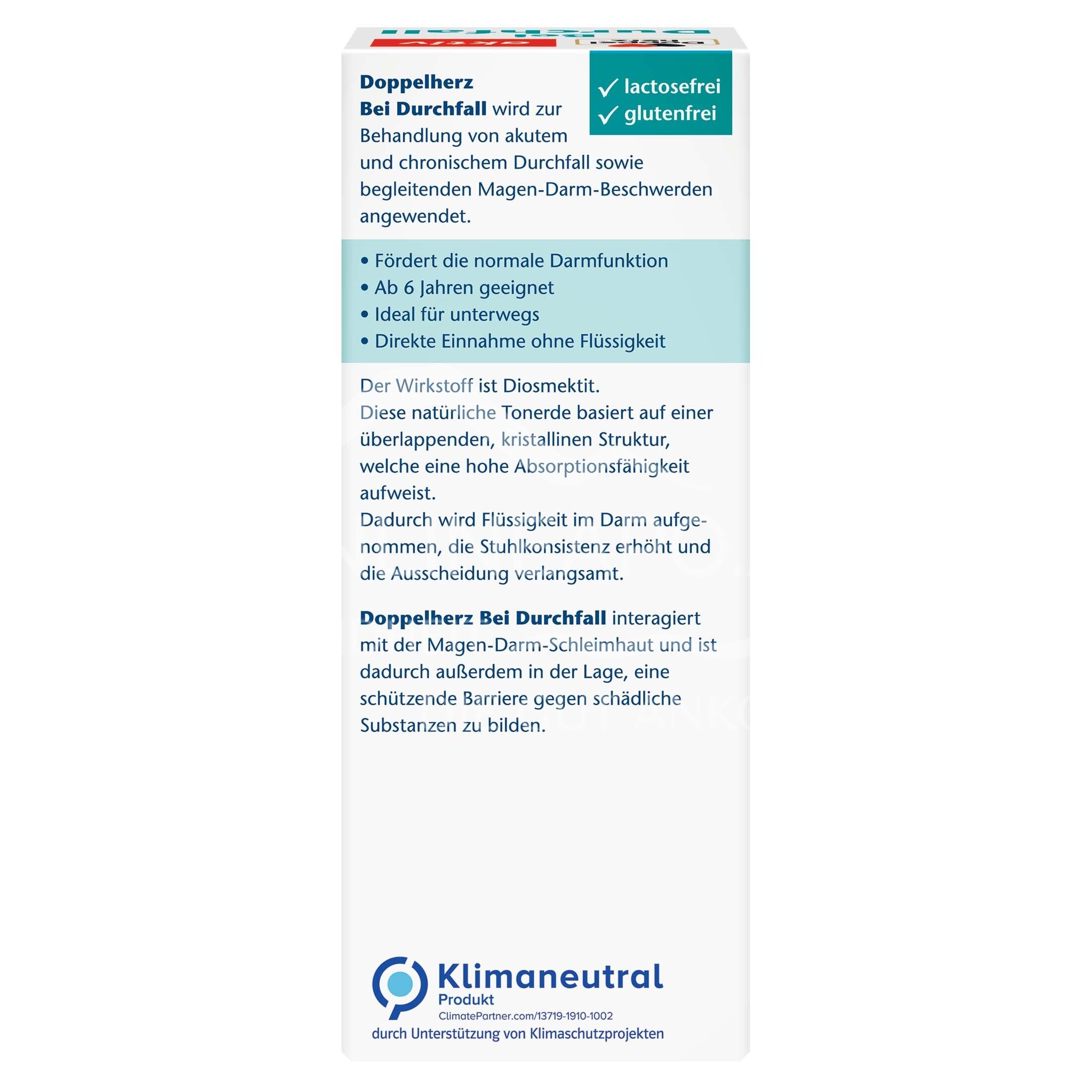 - Ein Stick Doppelherz Bei Durchfall enthält: Wirkstoffe: Diosmektit (1,5 g).