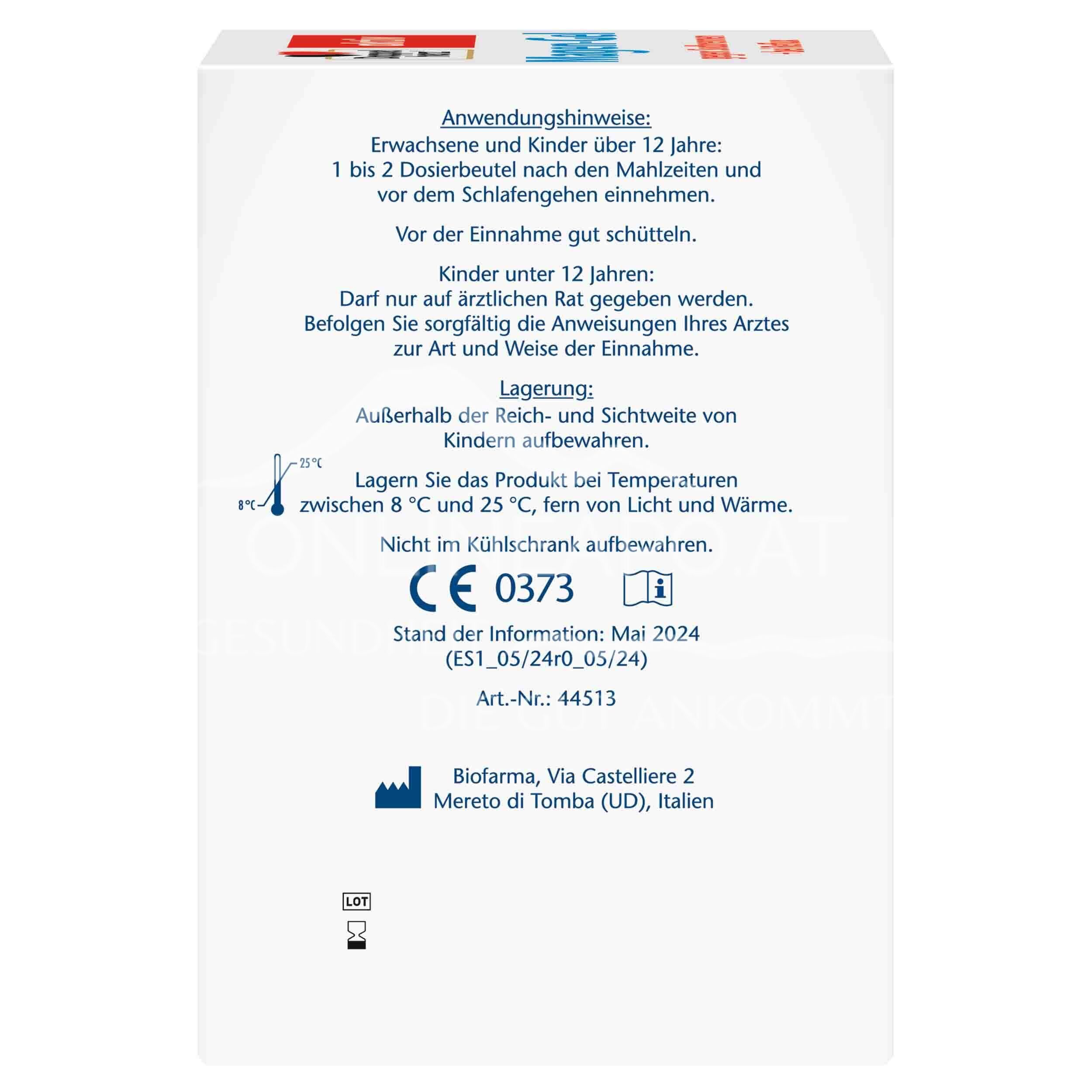 - Erwachsene und Kinder über 12 Jahre: 1 bis 2 Dosierbeutel nach den Mahlzeiten und vor dem Schlafengehen einnehmen. Vor der Einnahme gut schütteln.