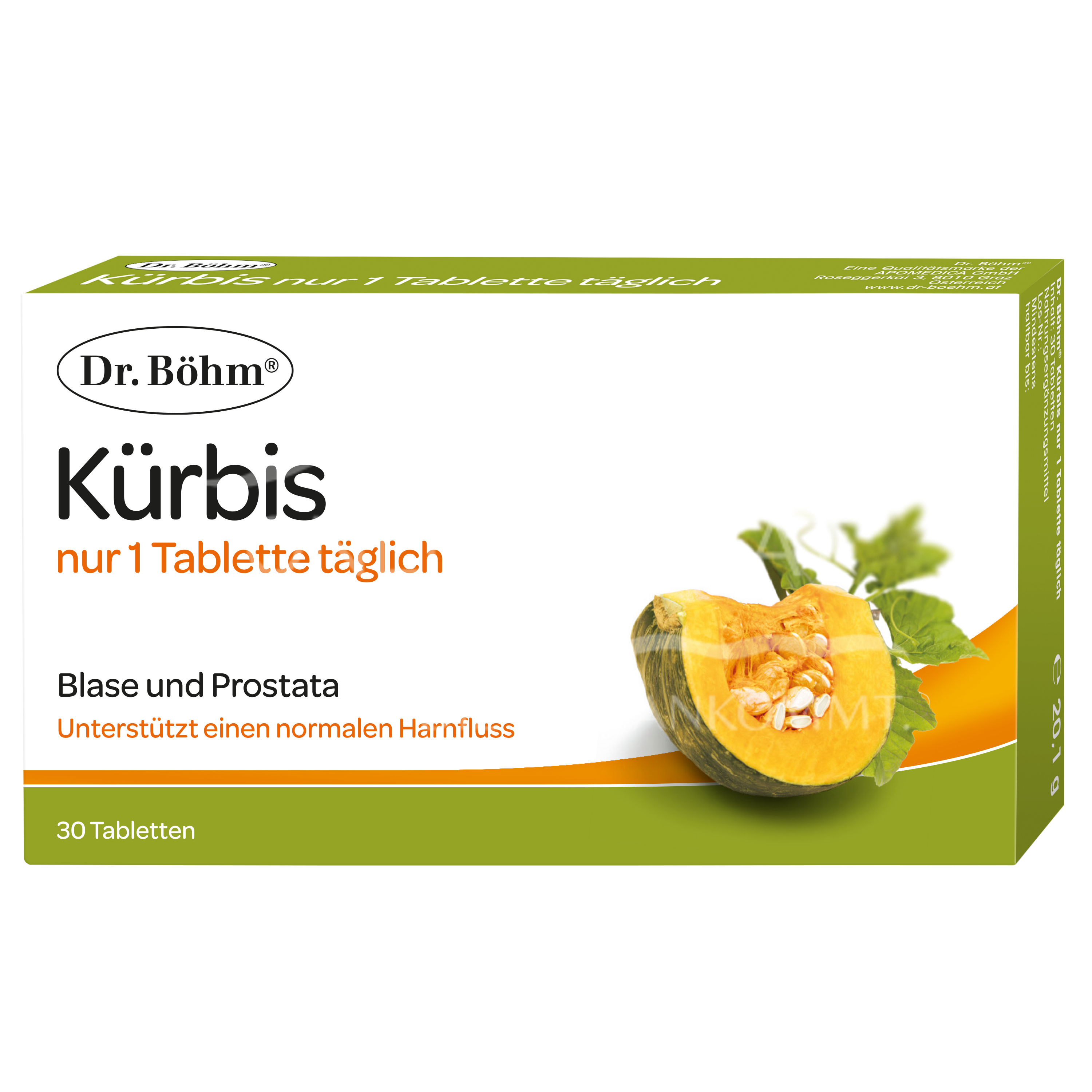 Dr. Böhm® Kürbis nur 1 x täglich Tabletten sorgen für normale Funktion der Blase und Prostata! Unterstützt einen normalen Harnfluss bei häufigem nächtlichen Harndrang, Nachtröpfeln und schwachem Harnfluss.