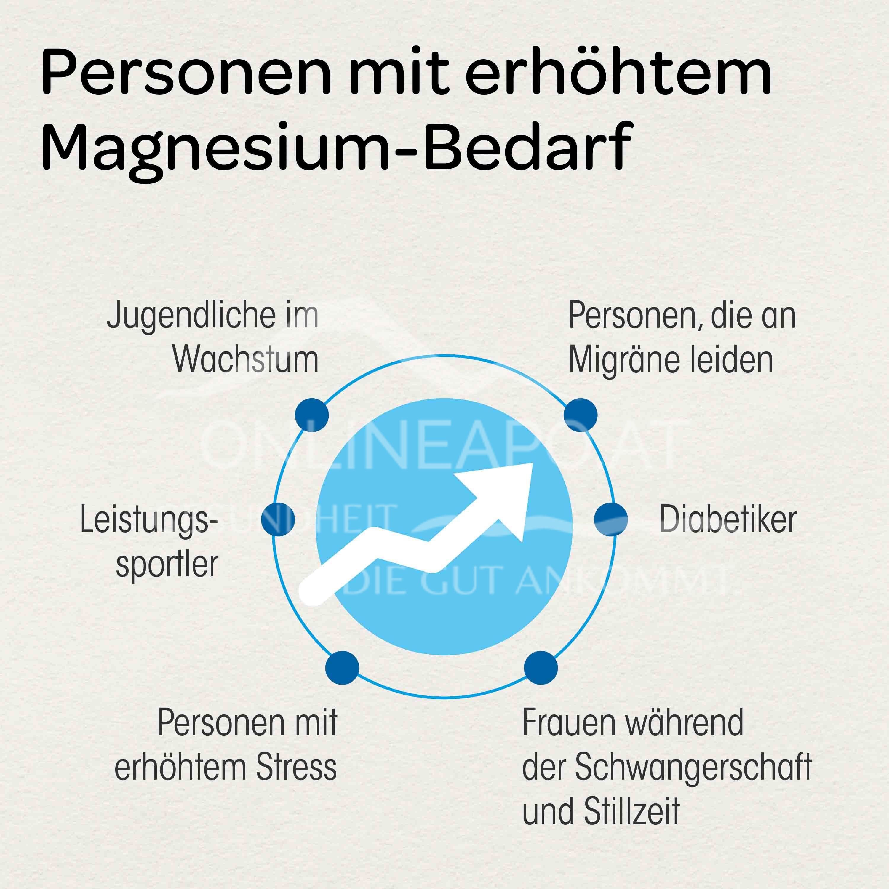 - Dauer der Anwendung: Die Dauer der Anwendung hängt von der Schwere des Magnesiummangels und den zugrunde liegenden Risikofaktoren für einen Mangel ab. Eine langfristige hochdosierte Magnesiumzufuhr ist mit einem Arzt zu besprechen und zu überwachen.