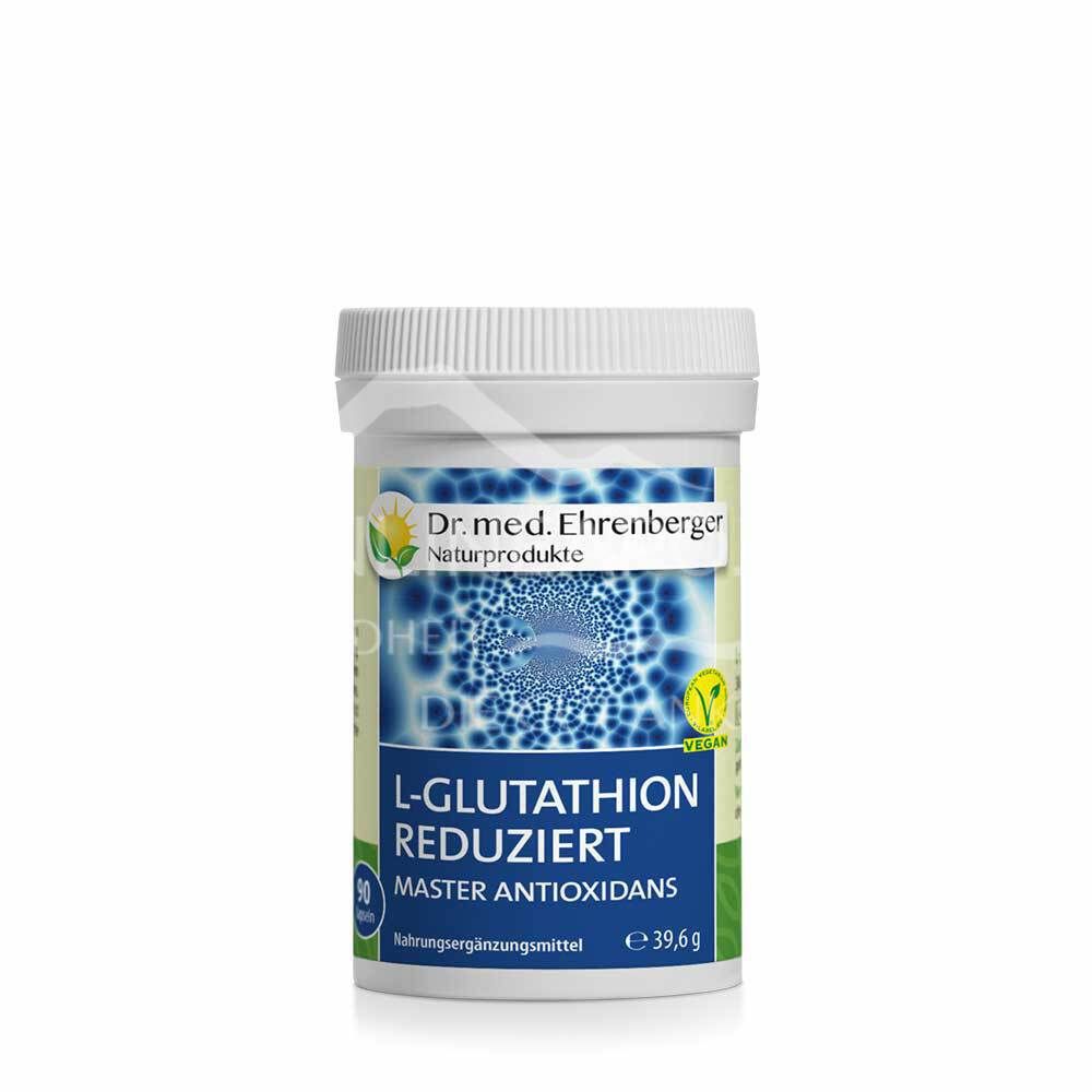 Dr. Ehrenberger L-Glutathion reduziert Kapseln sind ein Nahrungsergänzungsmittel dieses gilt als Master-Antioxidans. L-Glutathion ist eine körpereigene Peptidverbindung, die auf den drei Aminosäuren L-Glutaminsäure, L-Cystein und L-Glycin basiert.