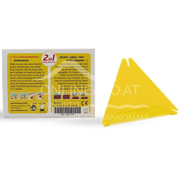 Die Dr. Schick Zeckenkammkarte mit Doppelfunktion ist das ideale Werkzeug zur sicheren Entfernung von Zecken von der Haut und ist vielseitig einsetzbar als Läusekamm, Flohkamm und Nissenkamm.