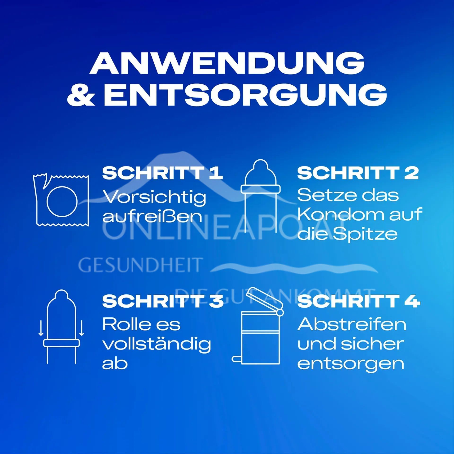 - Hinweise: Denke daran, dass keine Verhütungsmethode zu 100 % vor Schwangerschaft, HIV oder sexuell übertragbaren Krankheiten schützt. Es ist gut, Bescheid zu wissen – deshalb beachte bitte die Informationen auf der Innenseite der Packung, insbesondere, wenn du Kondome für Anal- oder Oralsex benutzt.