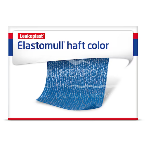 Elastomull haft color ist eine selbsthaftende elastische Fixierbinde zur Befestigung von Wundauflagen und Hilfsmitteln wie Schienen, Sonden und Polstermaterial.