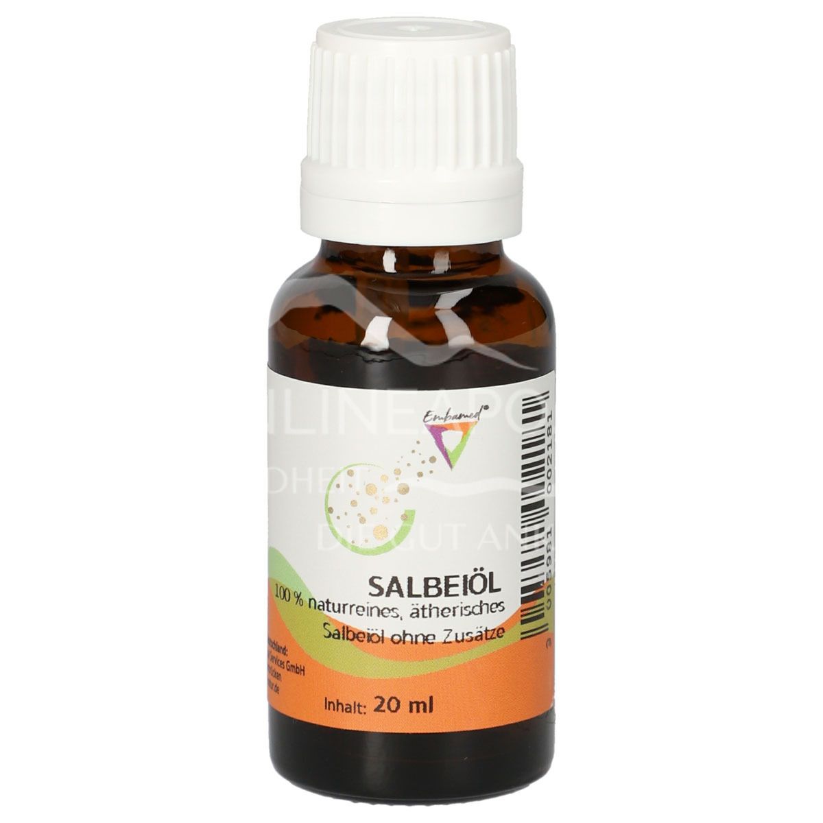 Hochwertiges ätherisches Salbeiöl von Embamed®. Ideal für Aromatherapie, zur Beruhigung und bei Hautproblemen. 100% naturreines, ätherisches Salbeiöl ohne Zusätze.