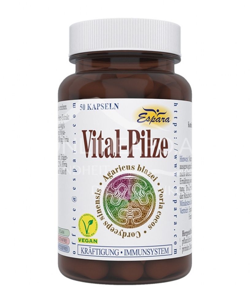 Espara Vital-Pilze Kapseln sind ein Nahrungsergänzungsmittel mit einer besonderen Kombination der hochwertigen Pilze Cordyceps sinensis, Fu-Ling und brasilianischem Mandelegerling.