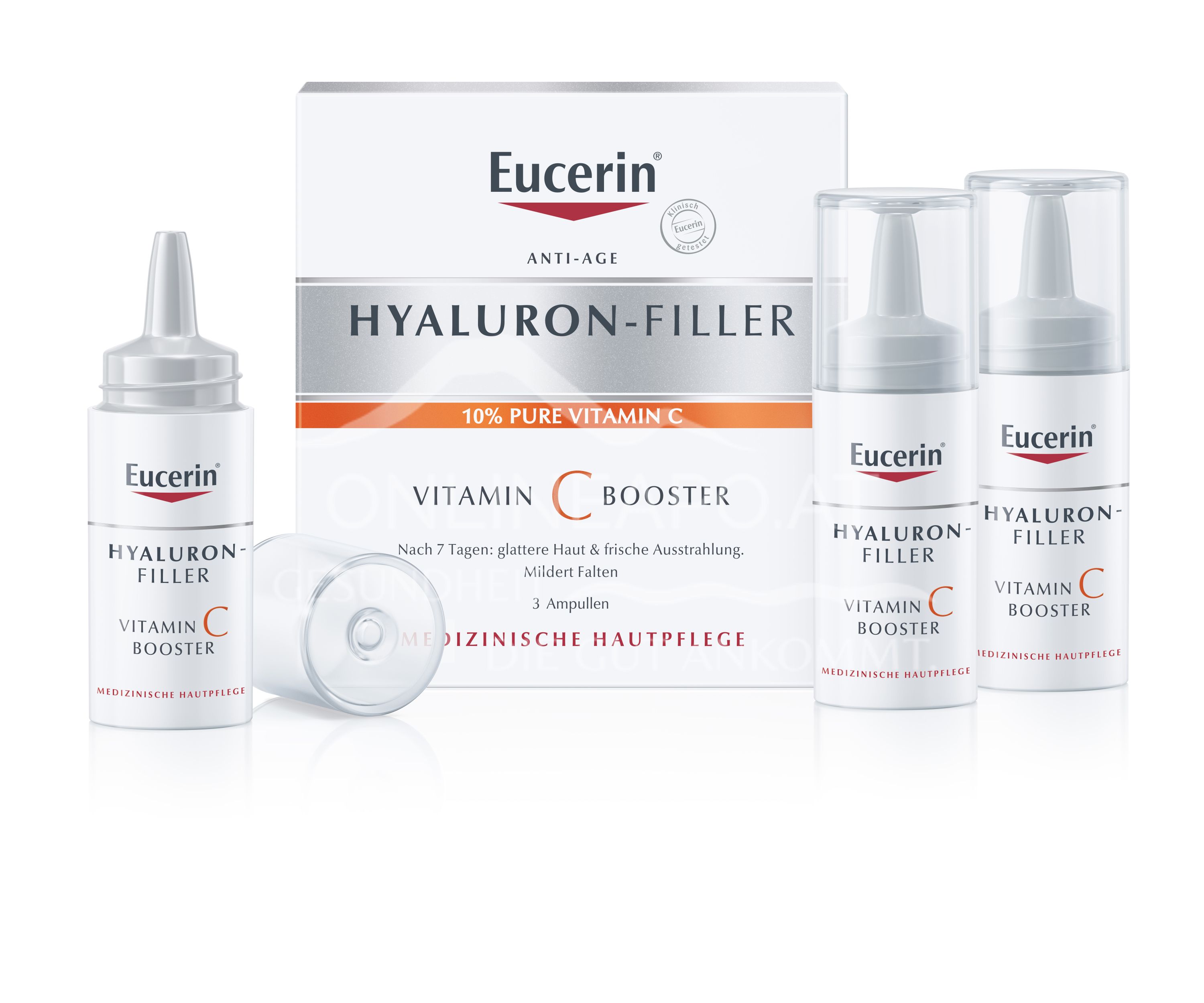 Eucerin® HYALURON-FILLER Vitamin C Booster ist ein Anti-Age Serum mit 10% frisch aktiviertem Vitamin C für alle Hauttypen Das schnell einziehende Serum stärkt die Haut und mildert erste Falten – für glattere Haut und eine frische Ausstrahlung.