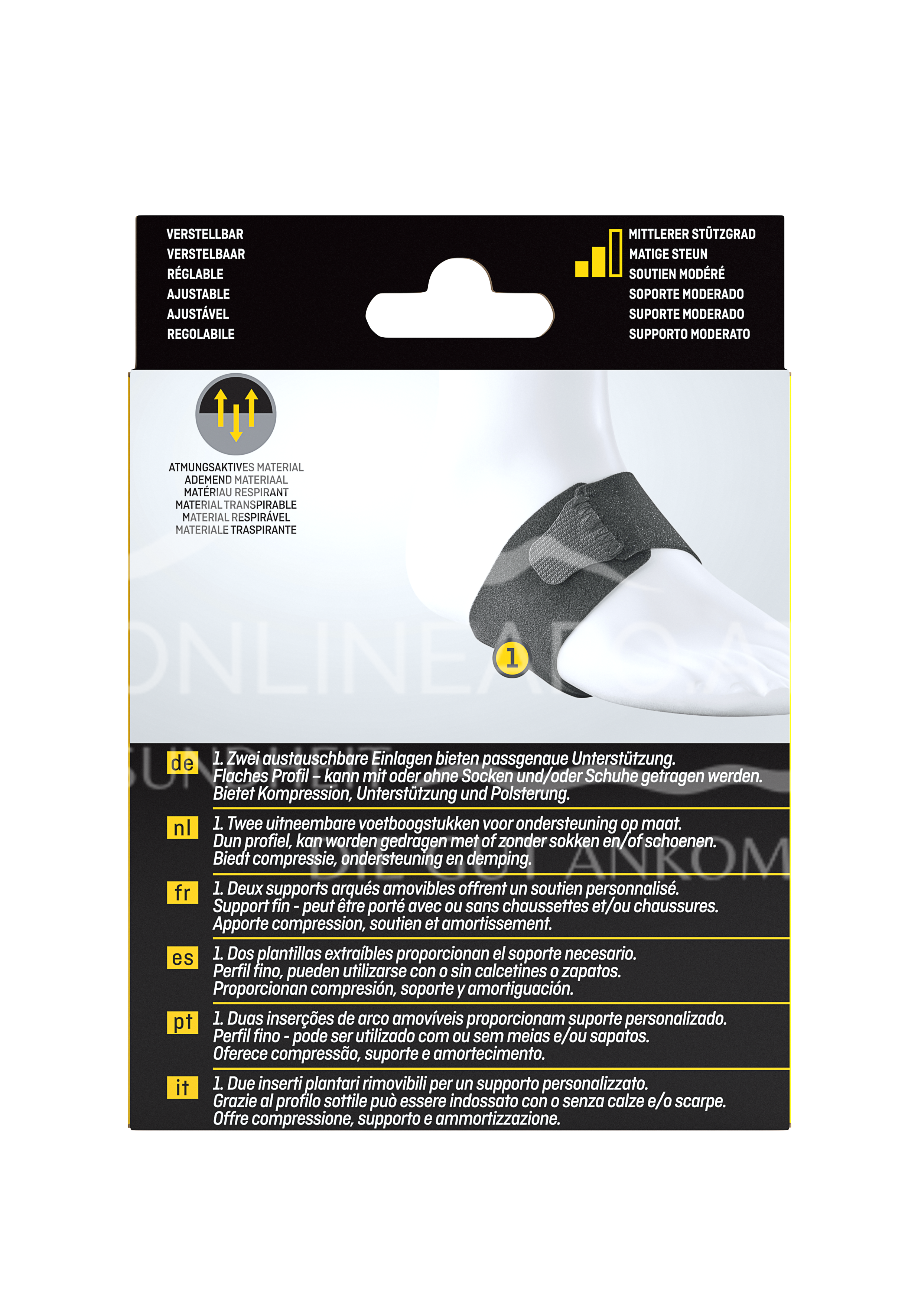 - Zur Unterstützung von Fuß, Fußgewölbe und Ferse.