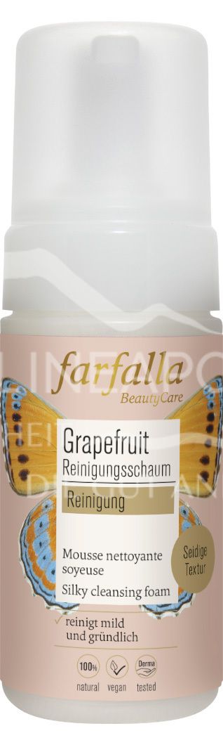 Der Farfalla Reinigungsschaum Grapefruit reinigt deine Haut sanft und porentief. Mit Bio-Grapefruit, Aloe Vera & Kamille. Für alle Hauttypen. Reinigt und erfrischt die Haut besonders gründlich, ohne auszutrocknen.
