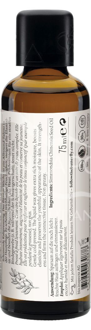 Das flüssige Wachs aus den Samen einer Wüstenpflanze ist ein Allround-Talent in der Hautpflege. Es schenkt reichhaltige Feuchtigkeit, steigert die Elastizität und bewahrt die Jugendlichkeit der Haut. Dadurch ist es prädestiniert für ein starkes und straffes Bindegewebe (z.B. während der Schwangerschaft). Auch unreine Haut profitiert sehr von seinem speziellem Fettsäurespektrum, das die Talgproduktion reguliert. Es zieht rasch ein und fettet nicht.
