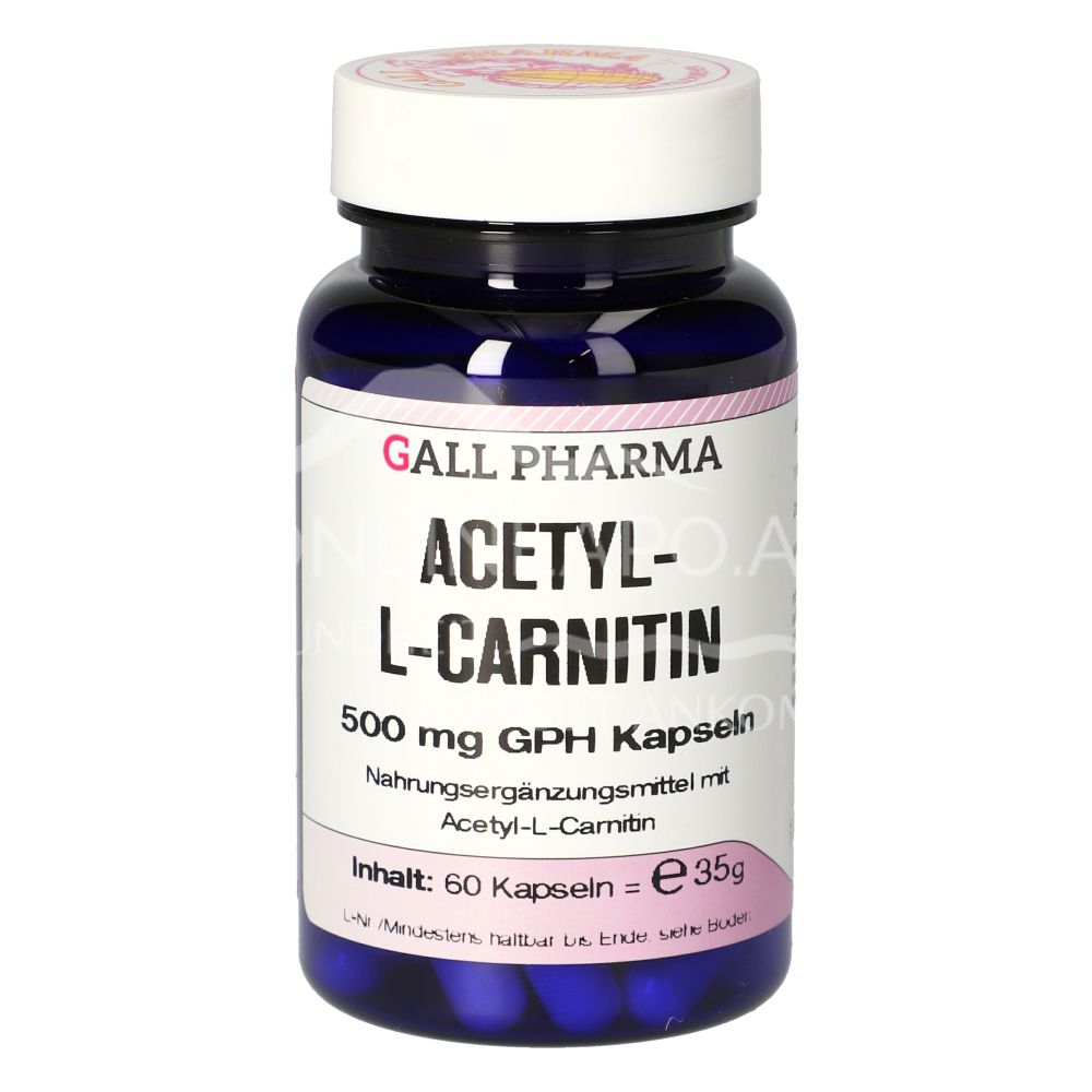 Gall Pharma Acetyl-L-Carnitin Kapseln sind ein Nahrungsergänzungsmittel mit 500 mg Acetyl-L-Carnitin pro Kapsel. Stellt eine schnell verfügbare Energiequelle dar, hat einen positiven Einfluss auf den Glucosestoffwechsel und steigert die Gedächtnisleistung.