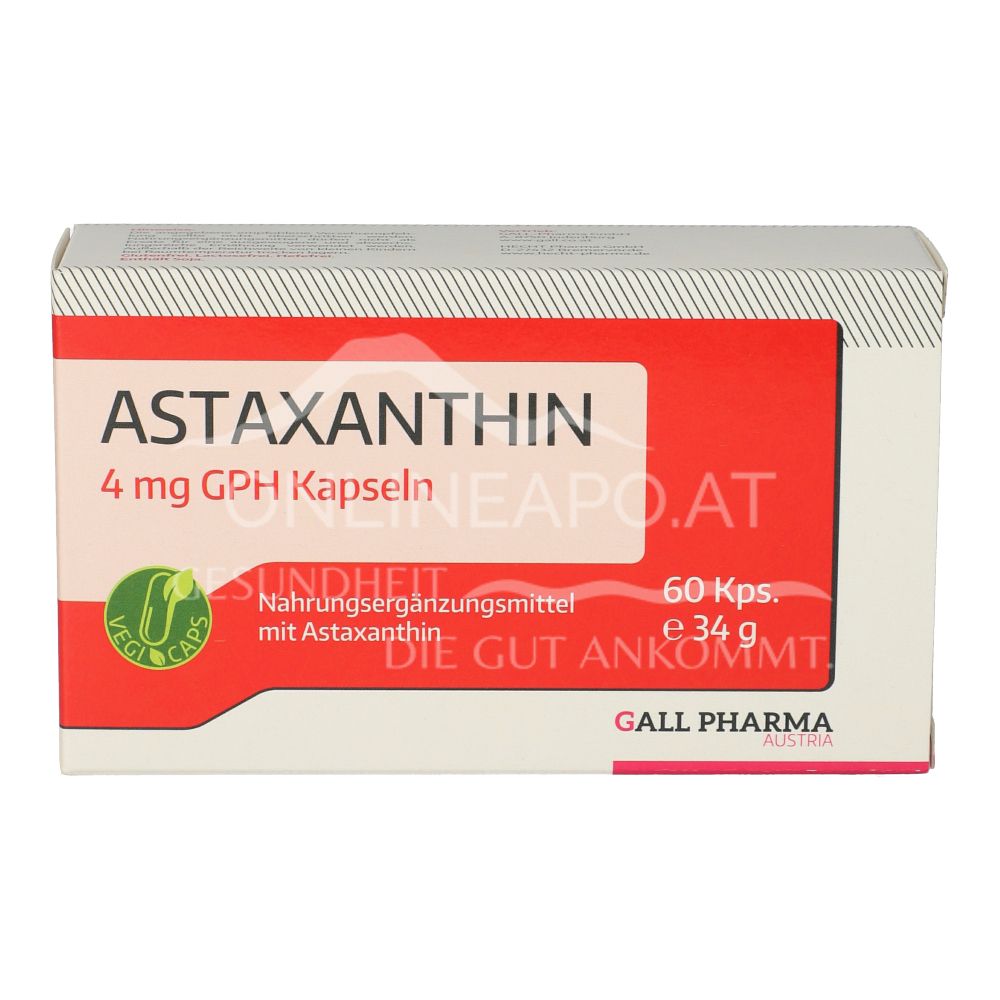 Die Gall Pharma Astaxanthin 4 mg Kapseln sind ein Nahrungsergänzungsmittel mit Astaxanthin einem Carotinoid, das von einzelligen Grünalgen der Gattung Haematococcus pluvialis (Blutregenalge) zum eigenen Schutz gebildet wird.