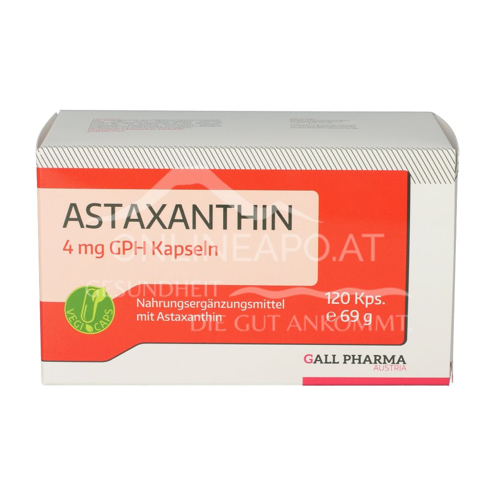 Die Gall Pharma Astaxanthin 4 mg Kapseln sind ein Nahrungsergänzungsmittel mit Astaxanthin einem Carotinoid, das von einzelligen Grünalgen der Gattung Haematococcus pluvialis (Blutregenalge) zum eigenen Schutz gebildet wird.