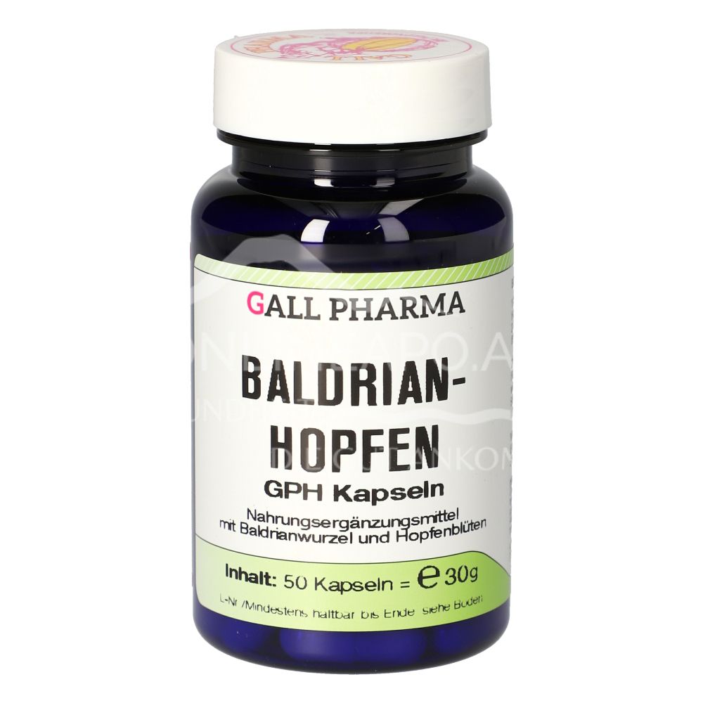 Die Gall Pharma Baldrian-Hopfen Kapseln sind ein Nahrungsergänzungsmittel mit Baldrianwurzel und Hopfenblüten zur Unterstützung des allgemeinen Wohlbefindens.