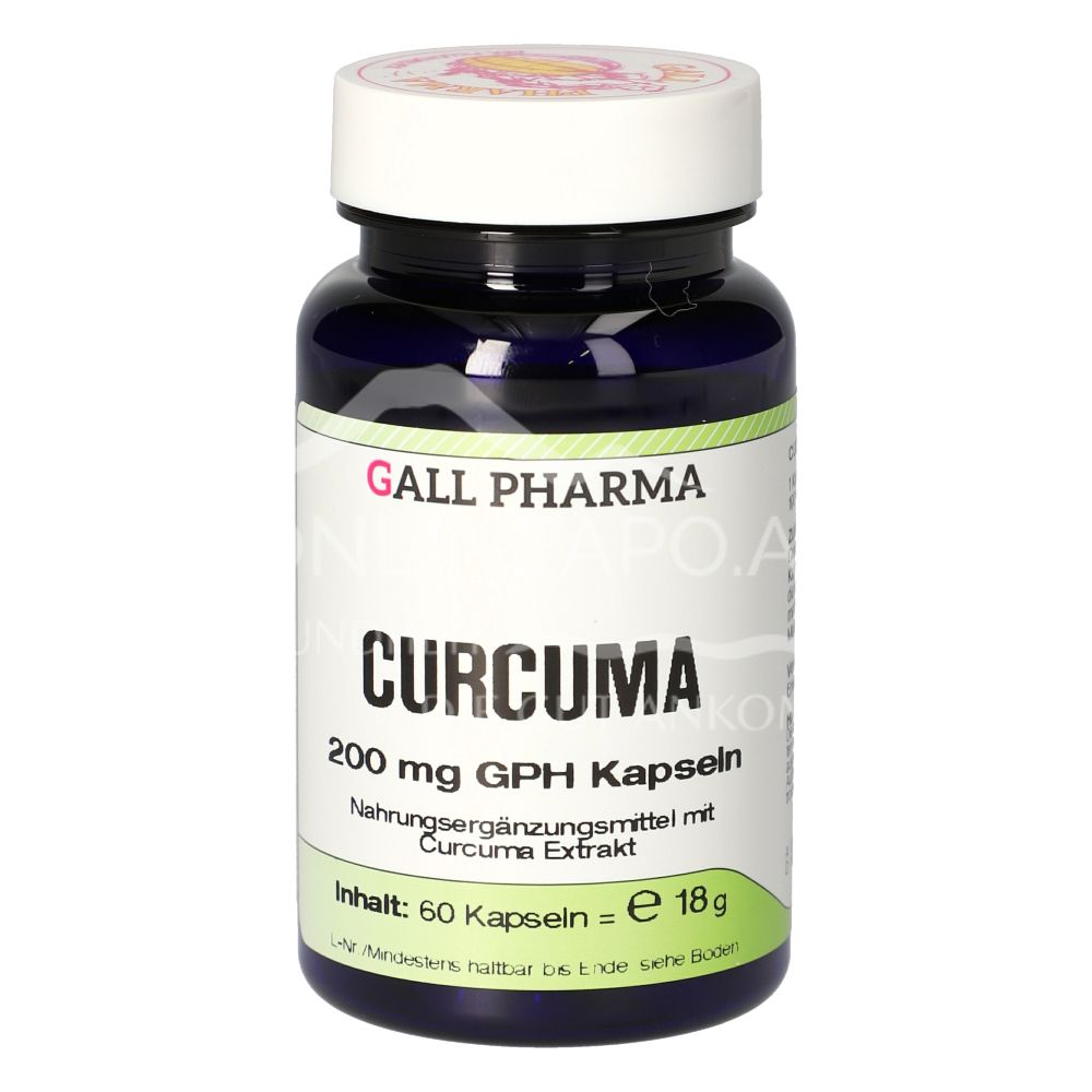 Gall Pharma Curcuma Kapseln sind ein Nahrungsergänzungsmittel mit 200 mg standardisierten Curcuma longa-Wurzelextrakt mit 95% Curcuminoiden. Kurkuma kann einen positiven Effekt auf die Verdauung und bei Gelenksproblemen haben.