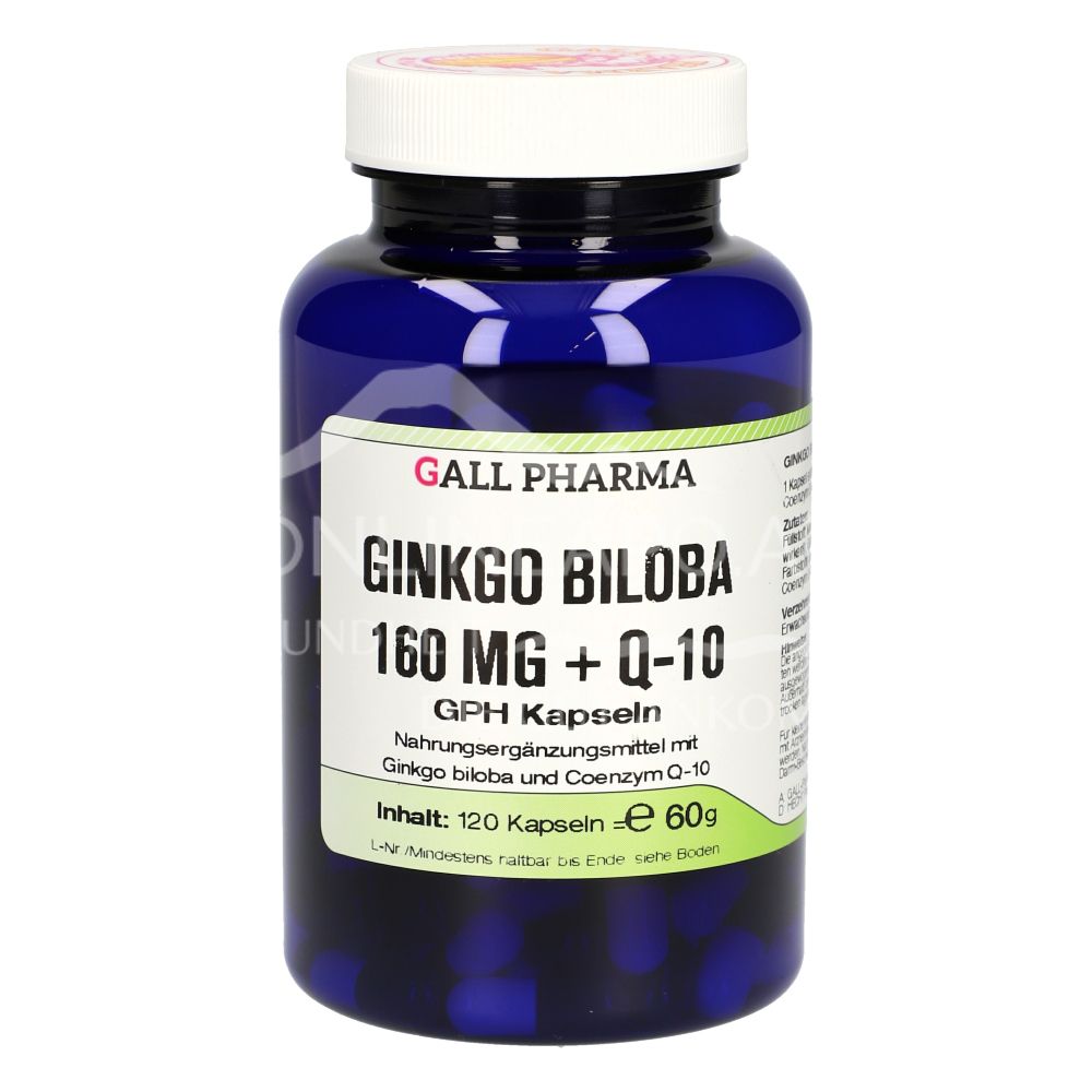 Die Gall Pharma Ginkgo Biloba 160 mg + Q10 Kapsel sind ein Nahrungsergänzungsmittel mit 160 mg Ginkgo biloba Extrakt und 30 mg Coenzym Q-10 pro Kapsel. Für das allgemeine Wohlbefinden bis ins hohe Alter.