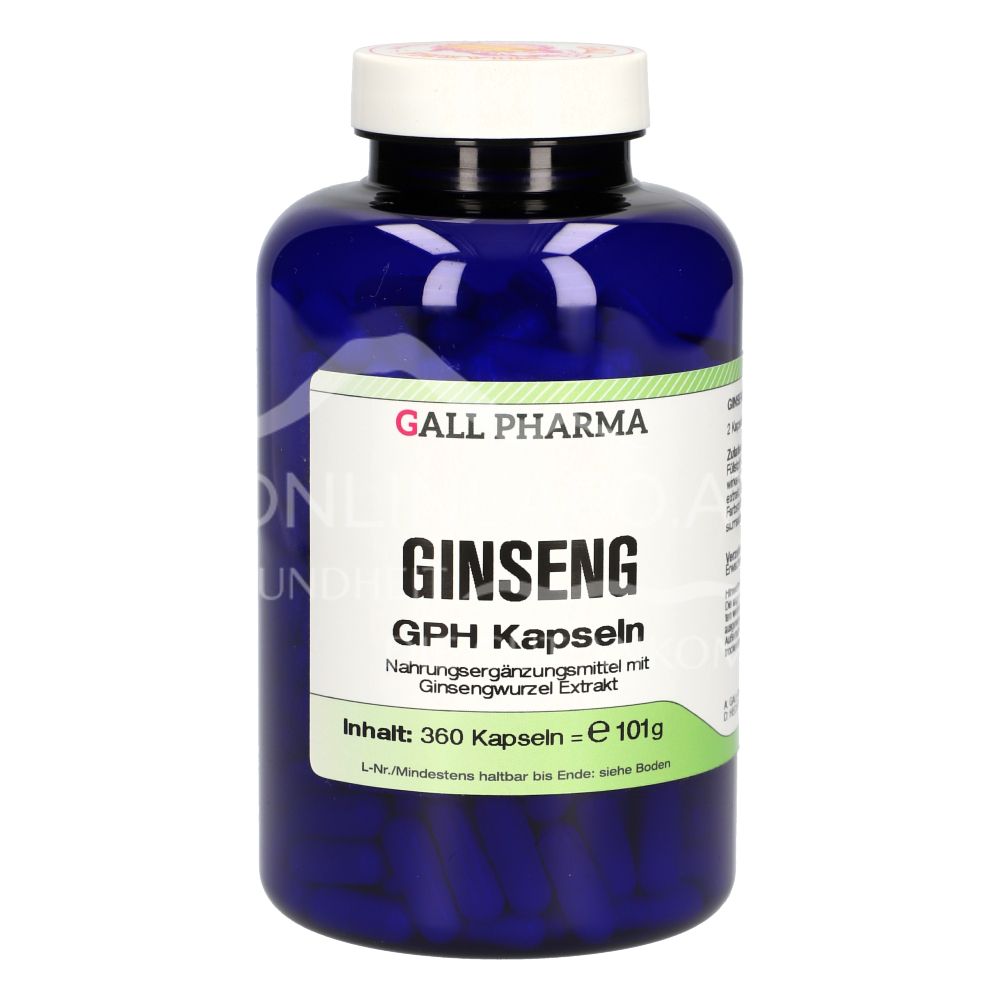 Gall Pharma Ginseng Kapseln enthalten 90 mg Trockenextrakt aus Ginsengwurzel (3 - 5:1) pro Kapsel. Ginseng unterstützt den Kreislauf, fördert die Durchblutung, trägt zum Erinnerungs- und Konzentrationsfähigkeit bei und schützt vor freien Radikalen.