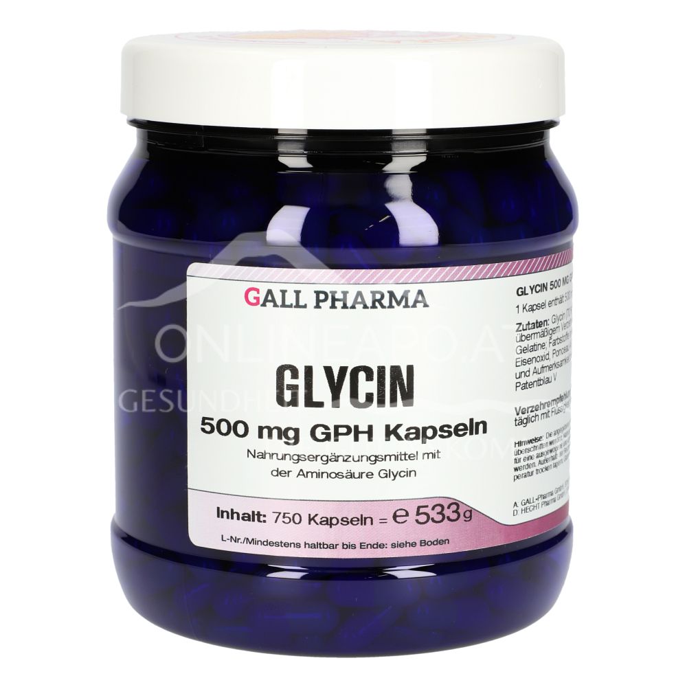 Gall Pharma Glycin Kapseln sind ein Nahrungsergänzungsmittel mit 500 mg Glycin pro Kapsel. Die Aminosäure fördert den Knorpelaufbau in den Gelenken, unterstützen das Immunsystem und die Abwehrkräfte und reguliert den Blutzuckerspiegel.
