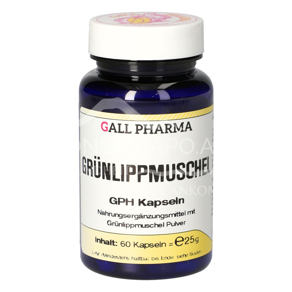 Gall Pharma Grünlippmuschel Kapseln sind ein Nahrungsergänzungsmittel mit 333 mg Grünlippmuschel Pulver pro Kapsel. Kann zur unterstützenden Behandlung bei Arthrose und Gelenkserkrankungen angewendet werden.