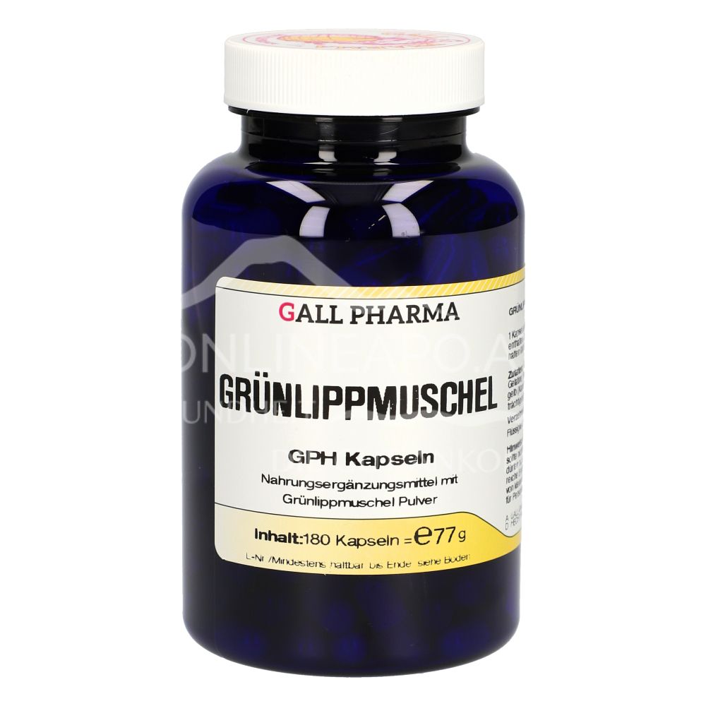 Gall Pharma Grünlippmuschel Kapseln sind ein Nahrungsergänzungsmittel mit 333 mg Grünlippmuschel Pulver pro Kapsel. Kann zur unterstützenden Behandlung bei Arthrose und Gelenkserkrankungen angewendet werden.