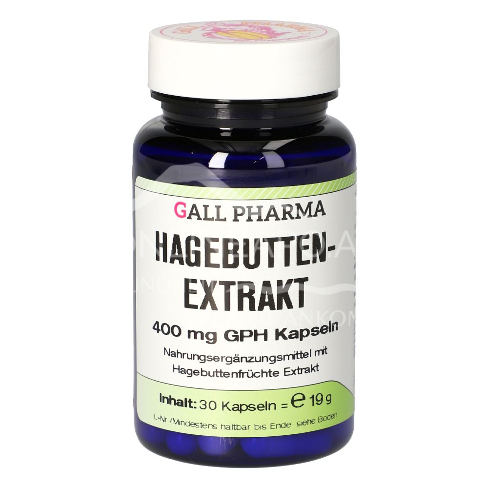 Gall Pharma Hagebuttenextrakt Kapseln sind ein Nahrungsergänzungsmittel mit 400 mg standardisierten Hagebuttenfrüchte Trockenextrakt (= 180 mg Vitamin C) pro Kapsel. Zum Schutz vor freien Radikalen und Stärkung des Immunsystems.