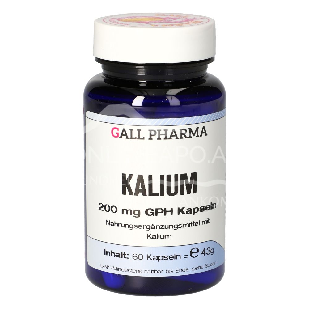 Kalium 200 mg GPH Kapseln enthalten 200 mg Kalium in Form von Kaliumchlorid in einer Hartgelatinekapsel. KCl deshalb, weil häufig ein Defizit an Kalium- und Chlorid-Ionen vorkommt. Kalium geht bei der Zubereitung von Lebensmitteln, beispielsweise durch Waschen und Kochen, in größeren Mengen verloren. Ein Mangel an Kalium kann eine Reihe von Störungen im Körper bewirken, die relativ unspezifisch sind. Durch die zu häufige Einnahme von Abführmitteln (Laxantien) sinken die Kaliumwerte.