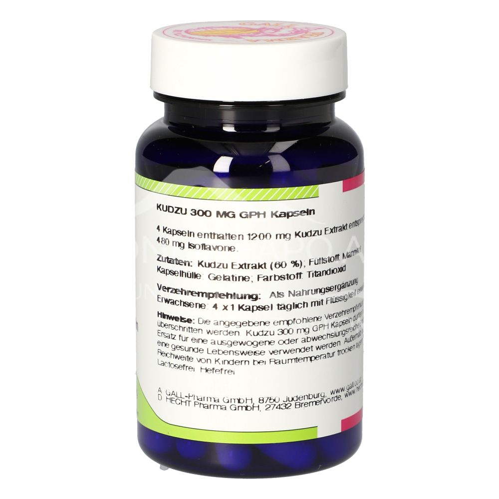 Die Gall Pharma Kudzu 300 mg Kapseln sind ein Nahrungsergänzungsmittel mit 300 mg eines Kudzu Trockenextraktes, standardisiert auf 40 % Isoflavone pro Kapsel.