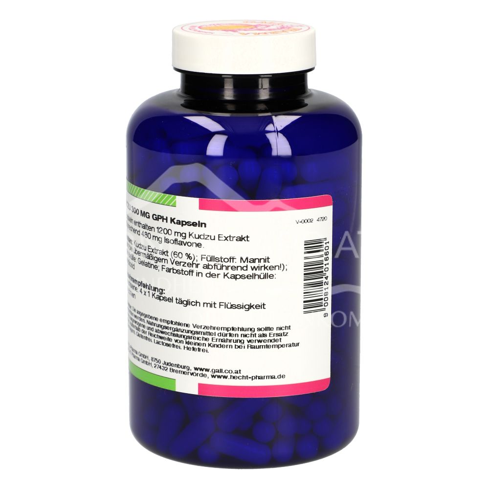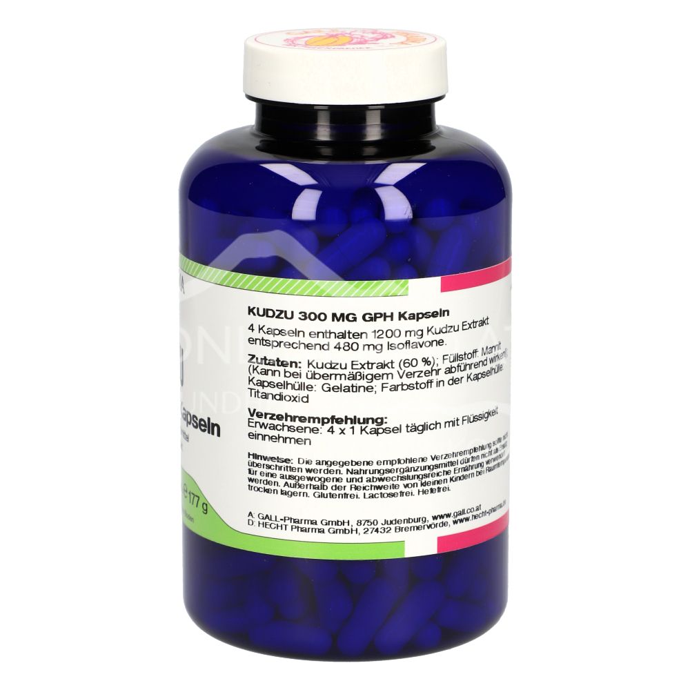 Die Gall Pharma Kudzu 300 mg Kapseln sind ein Nahrungsergänzungsmittel mit 300 mg eines Kudzu Trockenextraktes, standardisiert auf 40 % Isoflavone pro Kapsel.