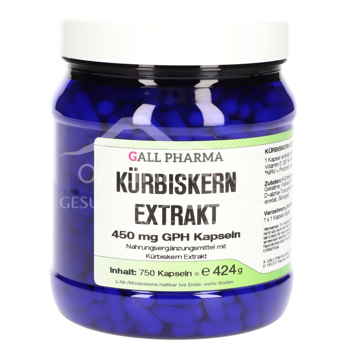 Die Gall Pharma Kürbiskernextrakt 450 mg Kapseln sind ein Nahrungsergänzungsmittel mit Kürbiskern Extrakt und Vitamin E.