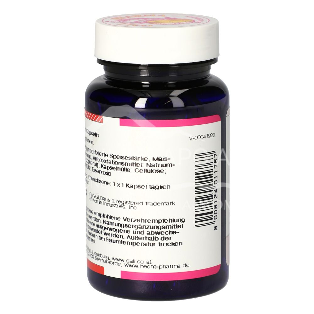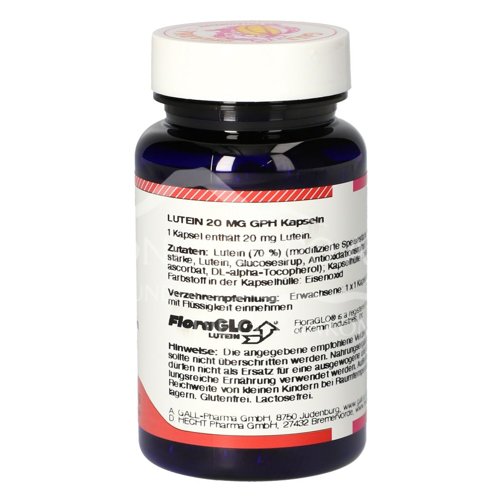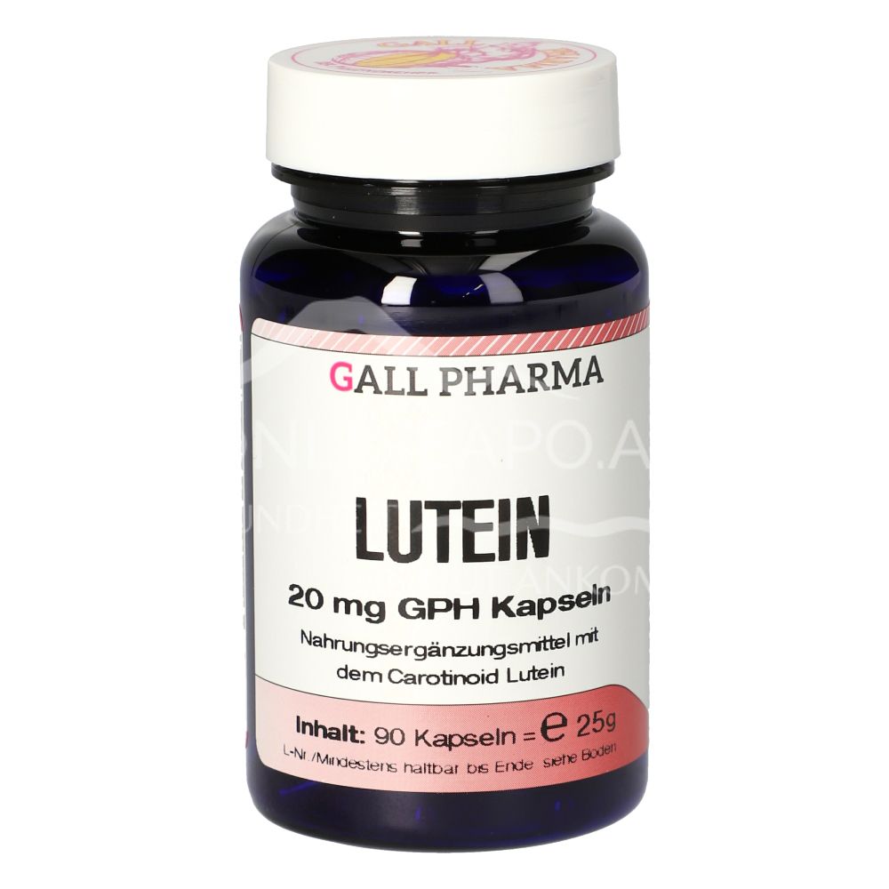 Die Gall Pharma Lutein 20 mg Kapseln sind ein Nahrungsergänzungsmittel mit 20 mg Lutein (Carotinoid) pro Kapsel. Zur Unterstützung der normalen Sehkraft.