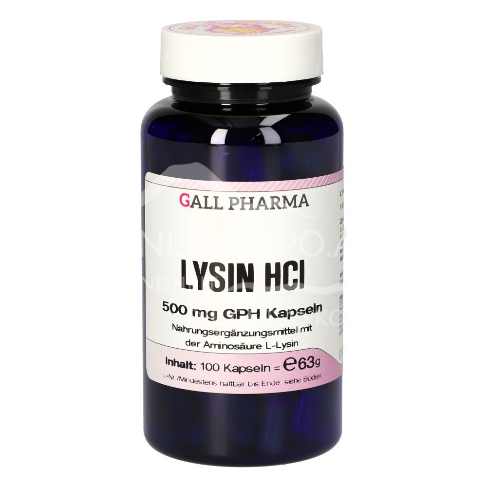 Gall Pharma Lysin HCL 500 mg Kapseln sind ein Nahrungsergänzungsmittel mit der Aminosäure L-Lysin. L-Lysin ist eine essentielle Aminosäure, die der Körper nicht selbst herstellen kann.