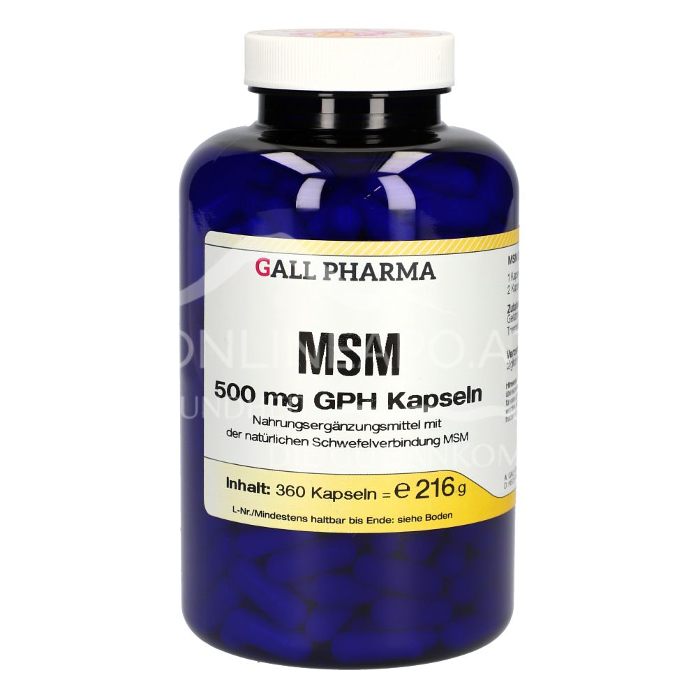 Gall Pharma MSM Kapseln ist ein Nahrungsergänzungsmittel mit 500 mg Methyl-Sulfonyl-Methan (MSM) pro Kapsel. MSM als natürliche schwefelhaltige Substanz unterstützt den Halt von Muskel, Bindegewebe und Bänder.