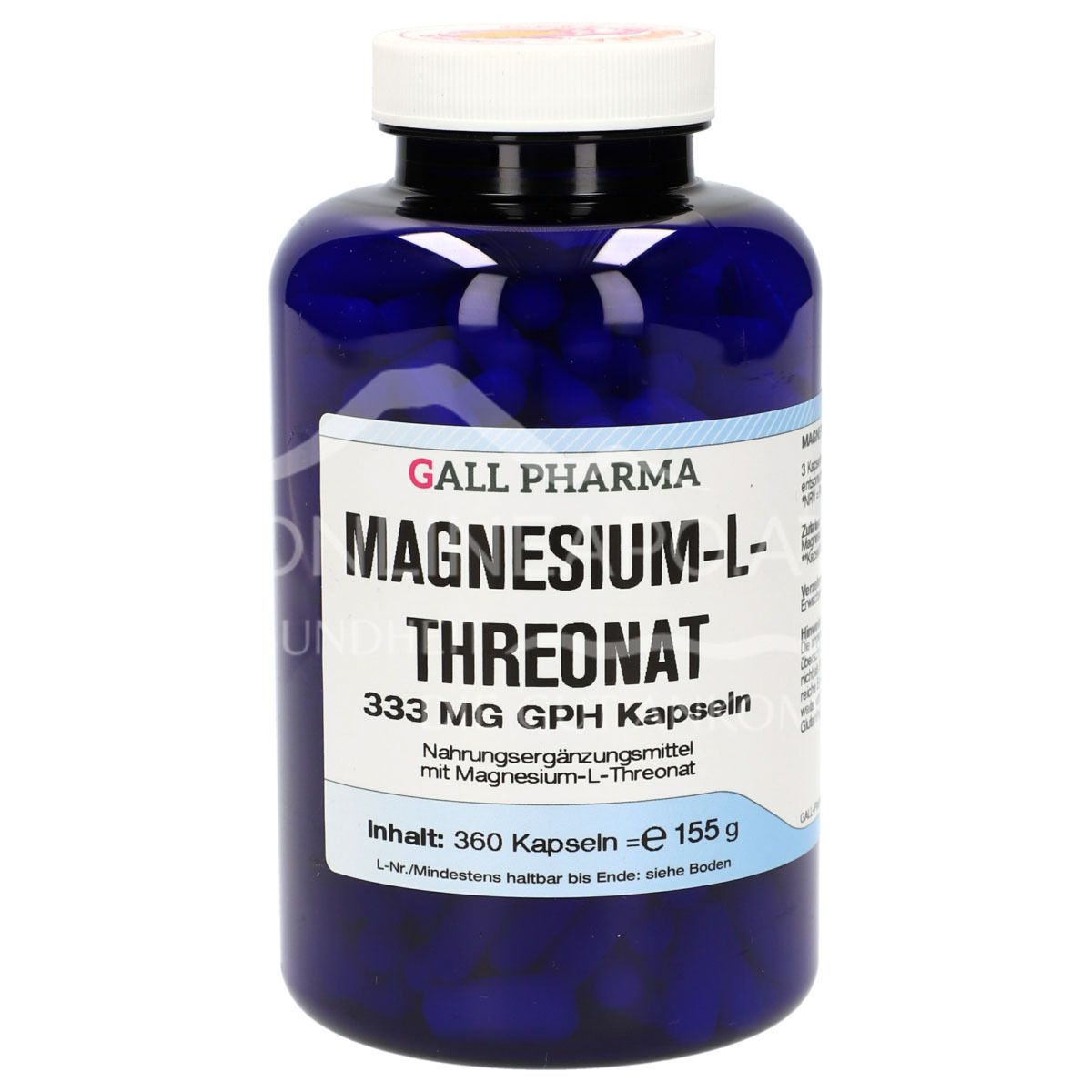 Die Gall Pharma Magnesium-L-Threonat 333 mg Kapseln sind ein Nahrungsergänzungsmittel mit Magnesium-L-Threonat. Magnesium-L-Threonat, ist eine Magnesiumverbindung, die sich durch ihre hohe Bioverfügbarkeit im Gehirn auszeichnet.